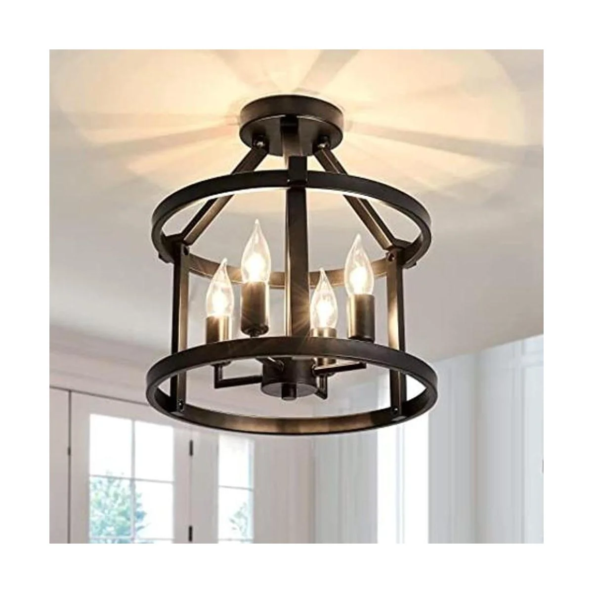 UOFUS Lámpara de techo de metal semiempotrada, 4 portavelas mate, lámpara de techo para comedor, dormitorio, cocina, pasillo, entrada negro
