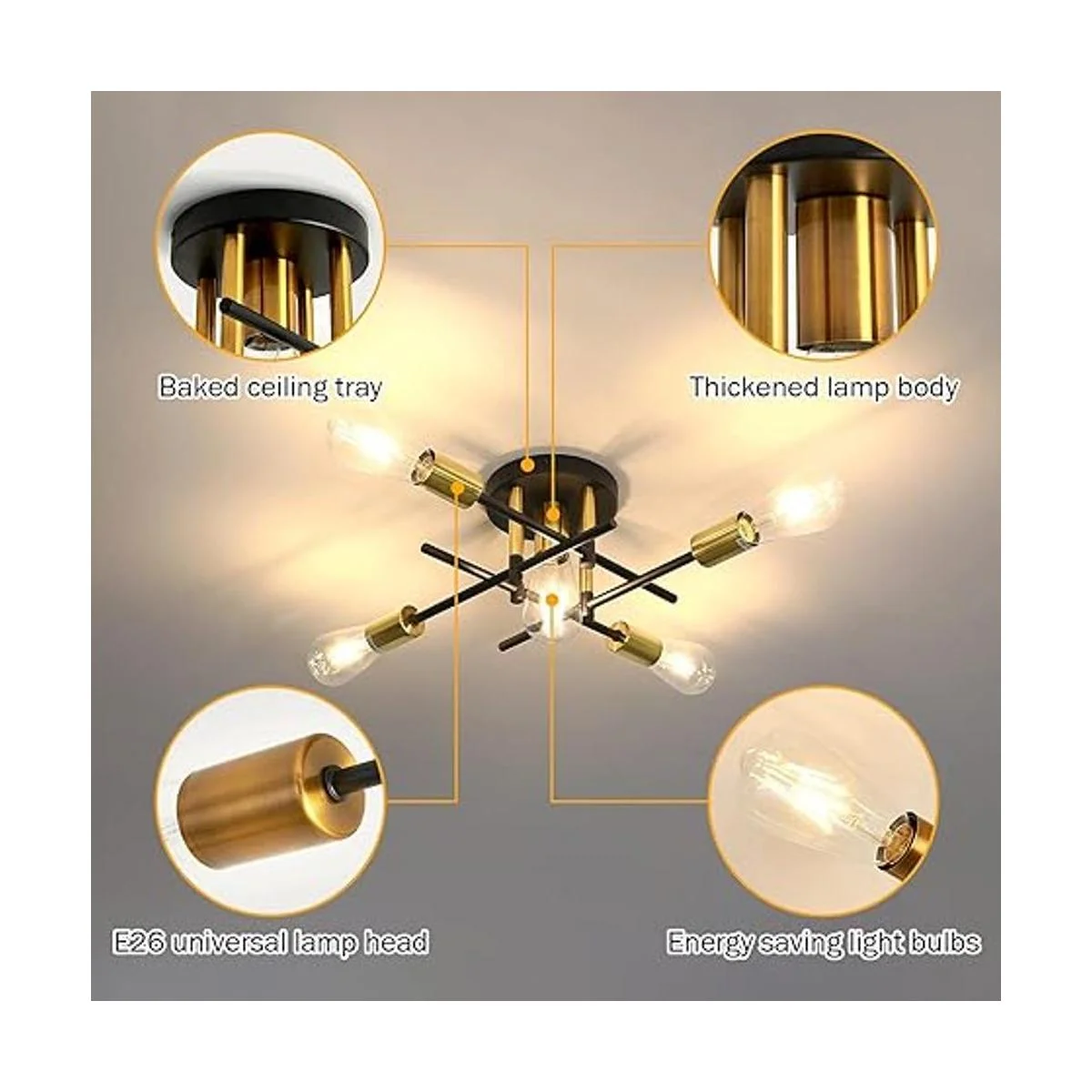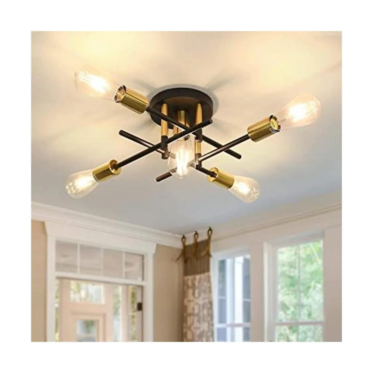 UOFUS Lámpara de techo semiempotrada de 5 luces mate con base E26 moderna lámpara de techo negra y dorada para casa de campo, pasillo, cocina, comedor, dormitorio, estudio, sala de estar, baño