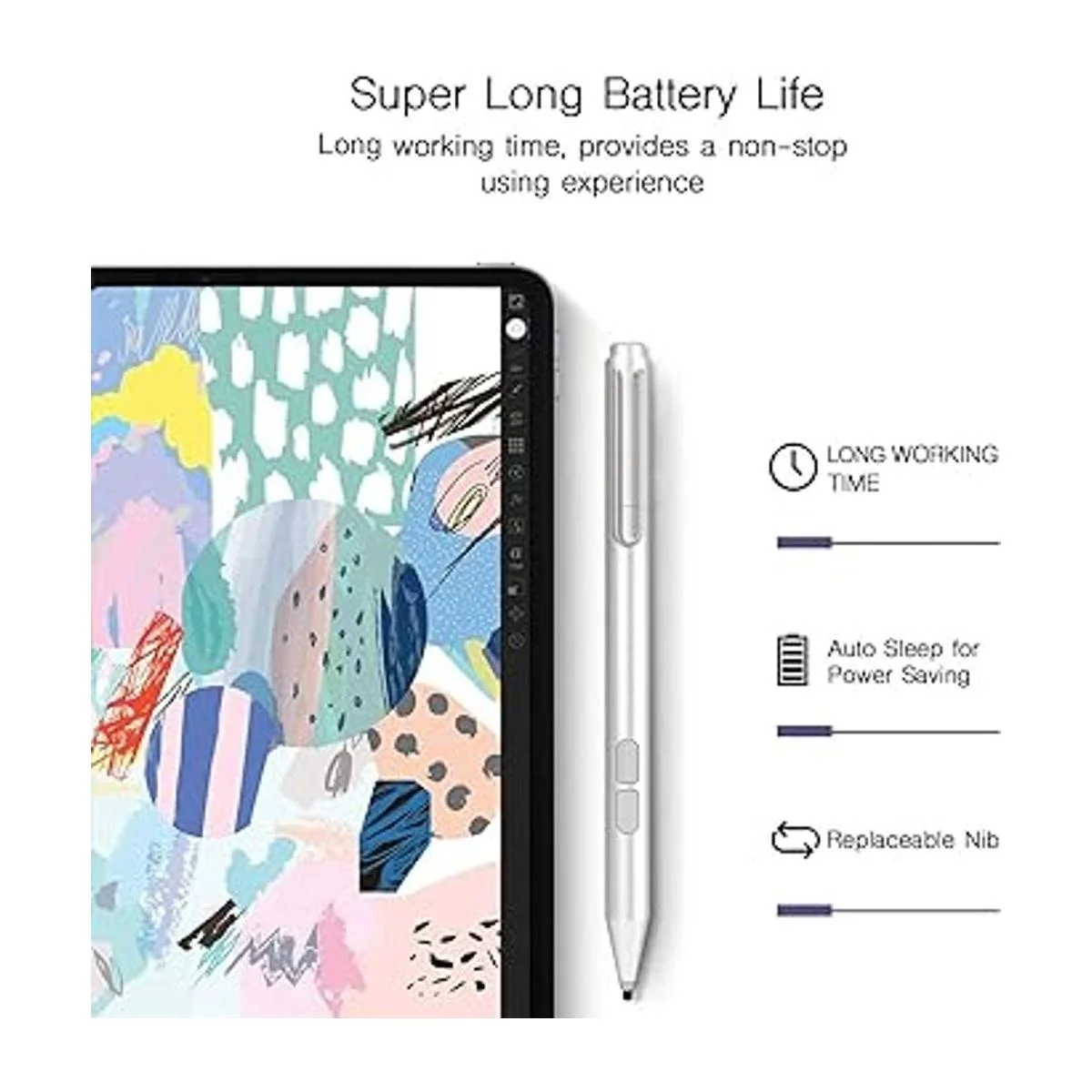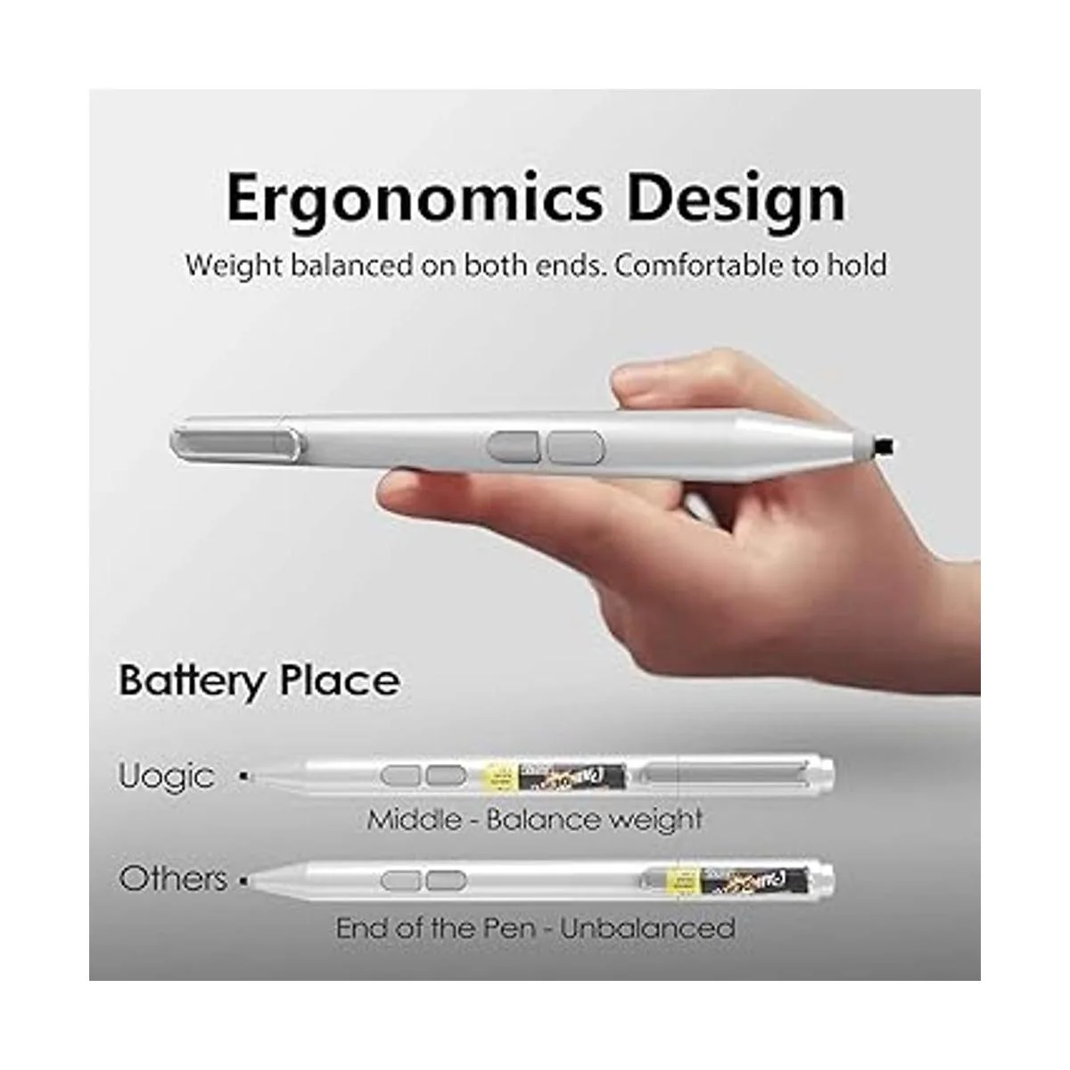 Uogic Bolígrafo para Microsoft Surface, rechazo de palma, presión de 1024 niveles, punta HB flexible y suave, compatible con Surface ProBookLaptopGo, incluye 2 puntas de repuesto y batería AAAA