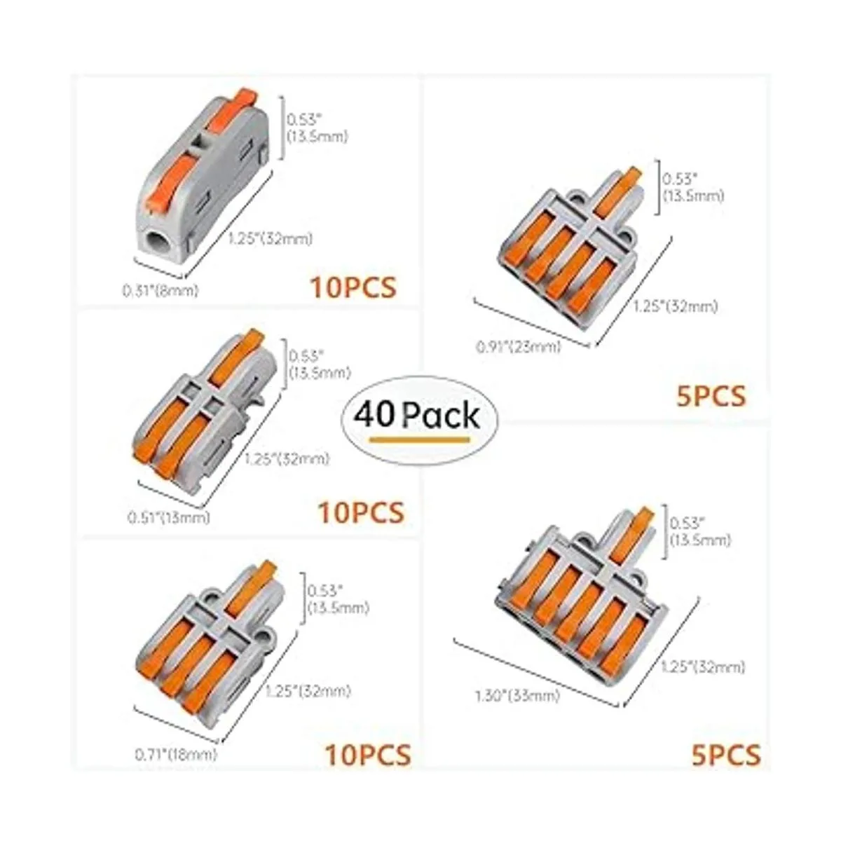 UOHGDPY 40 conectores de tuerca de alambre de palanca, salida 1 en 1, divisor de cable 1 en 5, conectores de cable compactos conectores de empalme para circuito en línea 2812 AWG