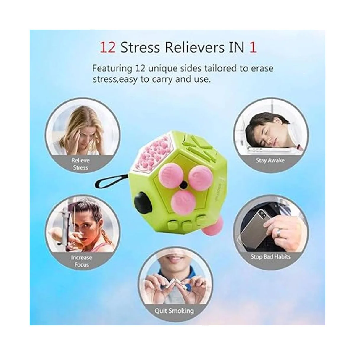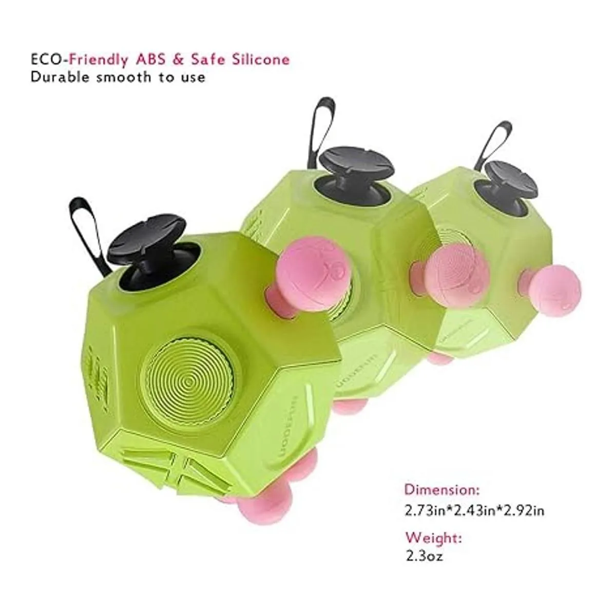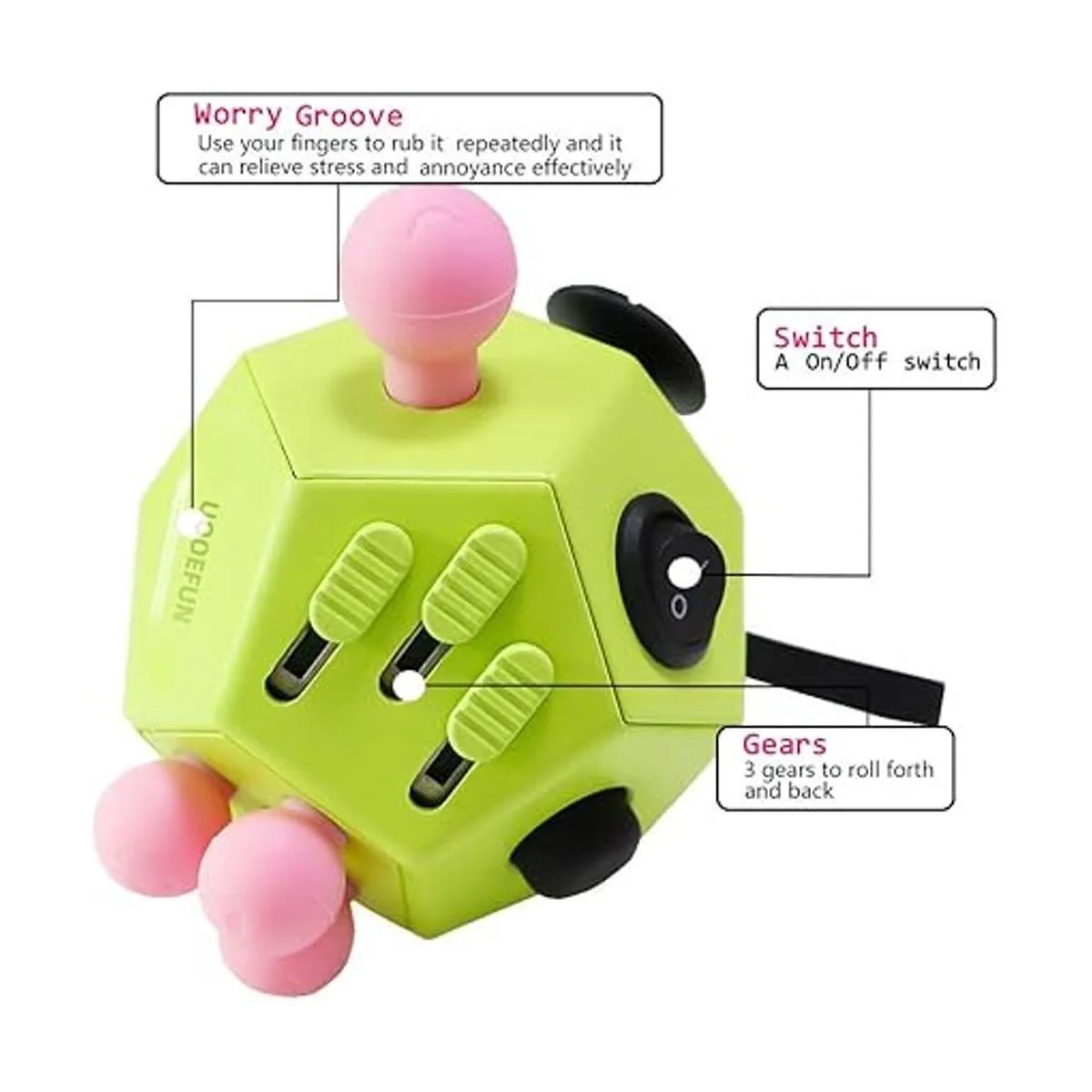 Cubo de figura de 12 lados: estructura de 12 lados de Dodecagon con 12 lados para que hagas clic, girar, girar, girar, etc. que incluye disco giratorio, joystick, ranura de preocupación, interruptor, clic suave, cuerda de sílice, bloques deslizantes, capullos esponjosos, engranajes, botón triangular, masaje de dedos y bola de estrés en total 12 formas diferentes para relajarte