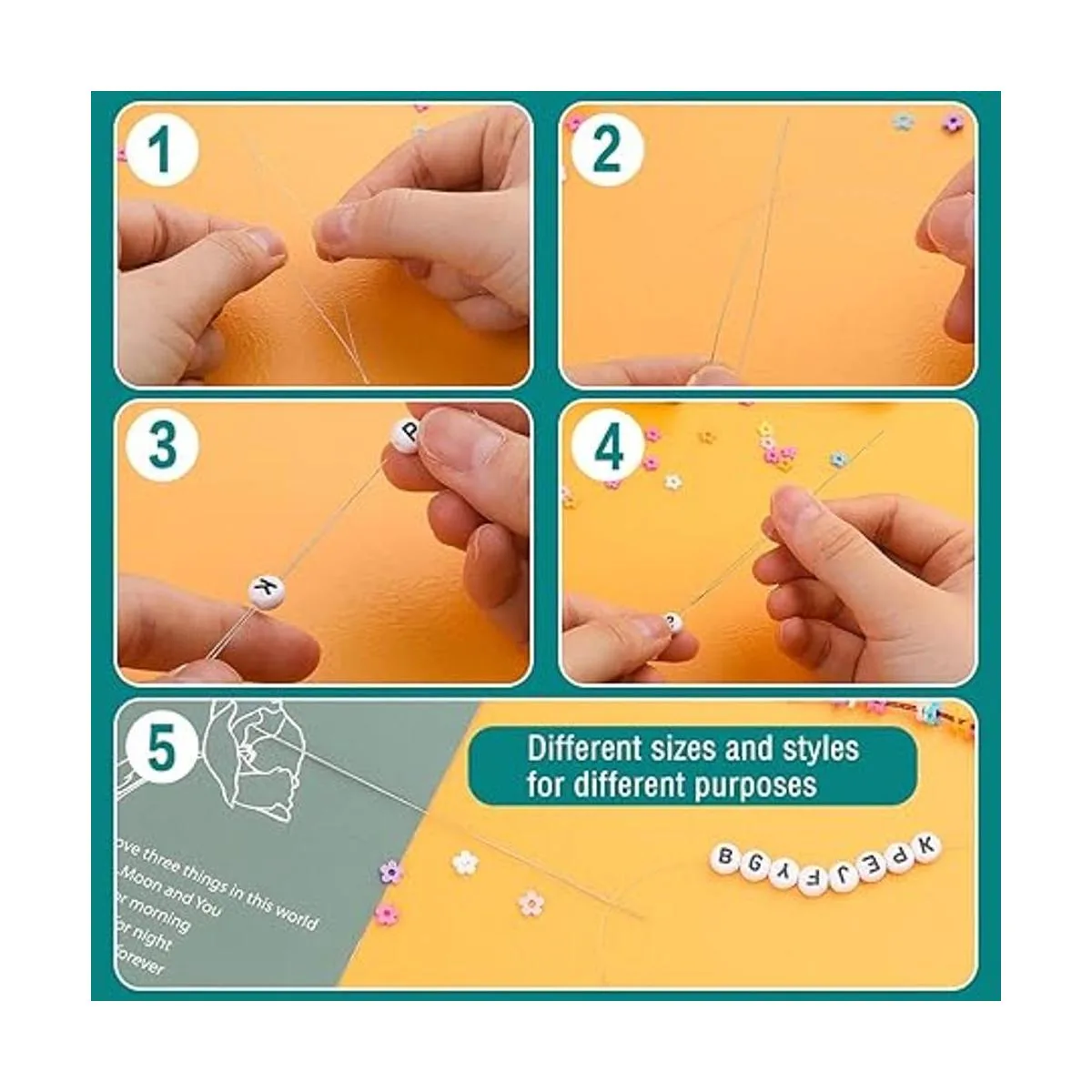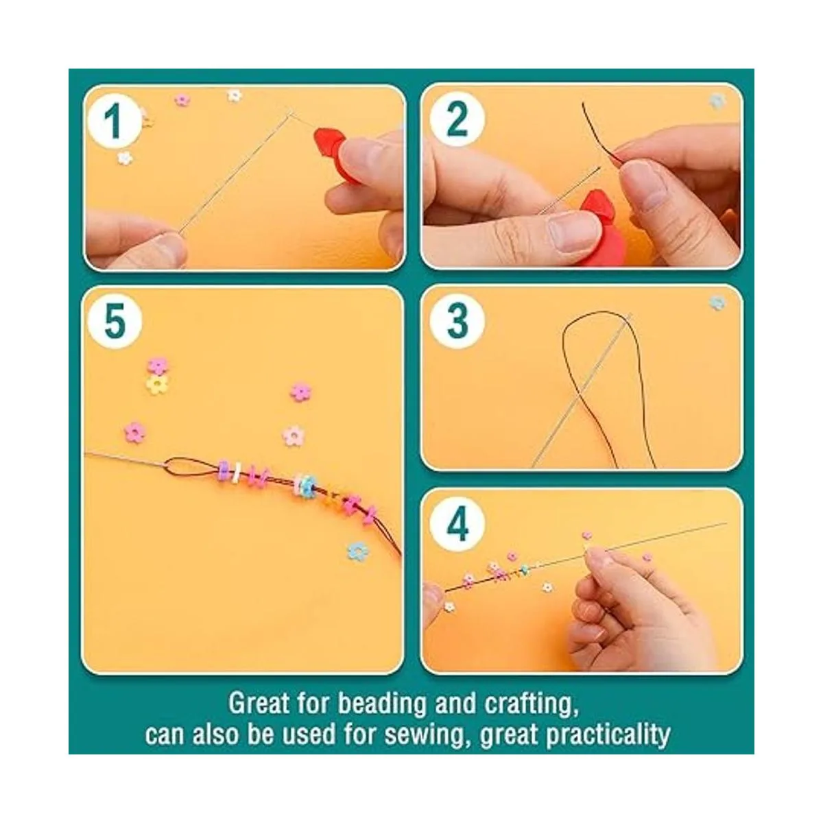 Material de las agujas de cuentas: nuestras agujas de cuentas están hechas de material de metal de buena calidad, ligero, duradero y no se oxida ni deforma fácilmente, se puede utilizar varias veces.