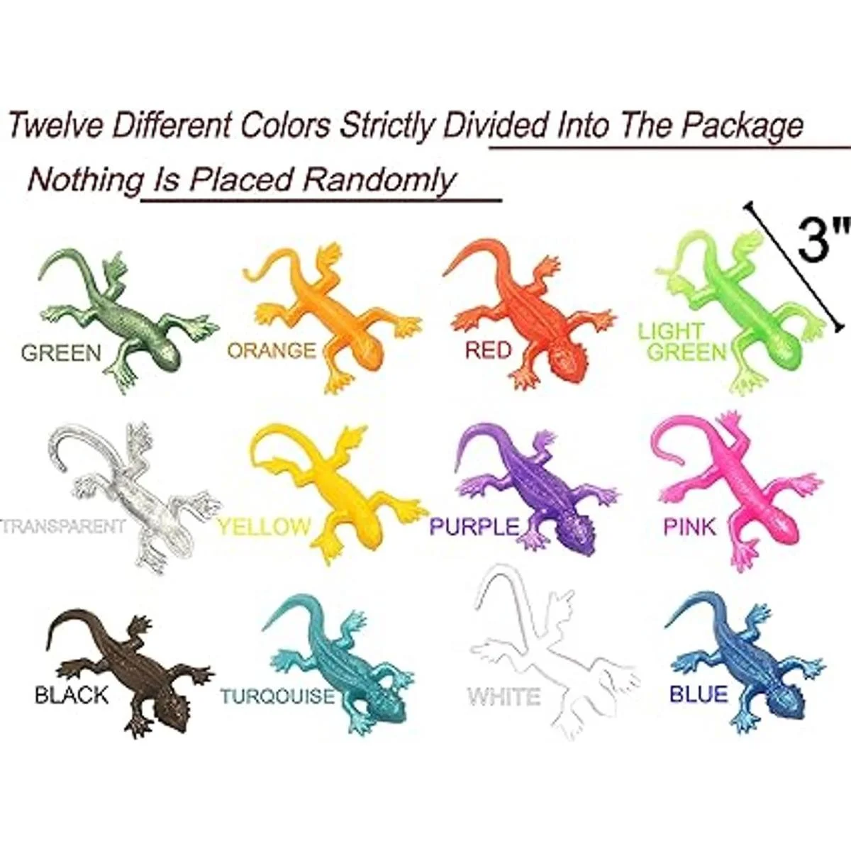 Cada lagarto mide 3 pulgadas. Los lagartos tienen formas bien definidas. Cada lagarto está envuelto individualmente, y todos están empaquetados en una bolsa con cremallera altamente resistente. Imprescindible junto con todas las pulseras con cremallera, manos adhesivas, esqueletos elásticos, dulces, cupcakes y juguetes novedosos en bolsas de caramelos. Sé el tema de conversación de la escuela y el vecindario con estos juguetes súper elásticos de reptiles de lagartos.