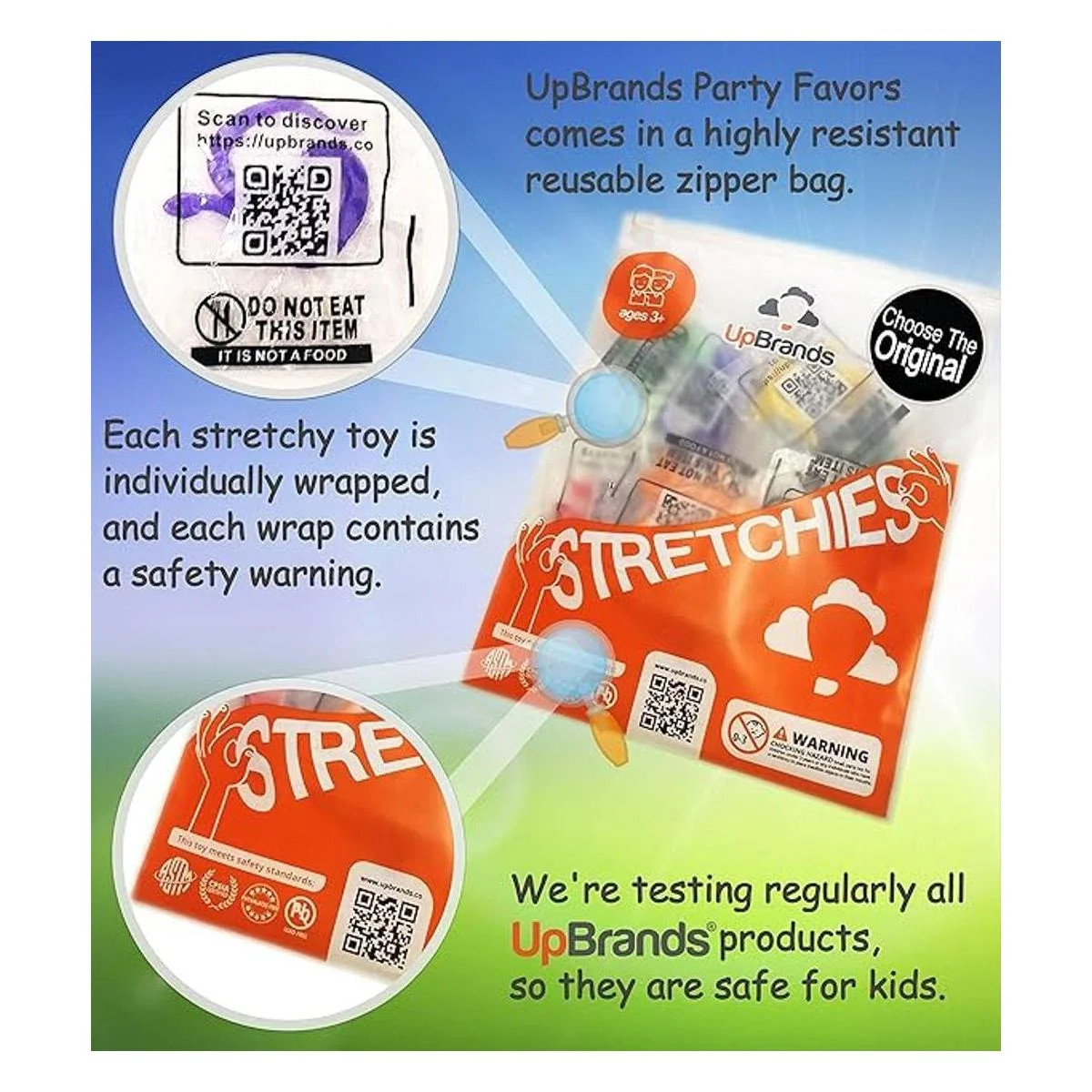 Paquete de 96 serpientes elásticos UpBrands un excelente kit para recuerdos de fiesta de cumpleaños para niños. Los niños y las niñas juegarán con estos juguetes de serpiente de goma y les encantará compartirlos en bolsas de regalo. Un artículo imprescindible, junto con todas las pulseras con cremallera para inquietos, manos pegajosas, ranas elásticas, esqueletos elásticos, globos, dulces, cupcakes, dinosaurios elásticos, decoraciones que brillan en la oscuridad y suministros de juguetes novedosos en bolsas de dulces. Sé el tema de conversación de la escuela y el vecindario con estos reptiles flexibles.