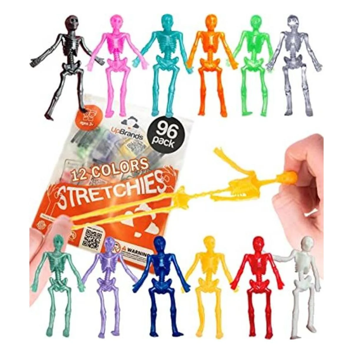 UpBrands Juego de 96 recuerdos de fiesta para niños, esqueleto elástico a granel, 8 colores, kit para cumpleaños, Halloween, bolsas de golosinas, cesta de huevos de Pascua, relleno de piñata, juguetes pequeños, premios de aula, recompensas para estudiantes