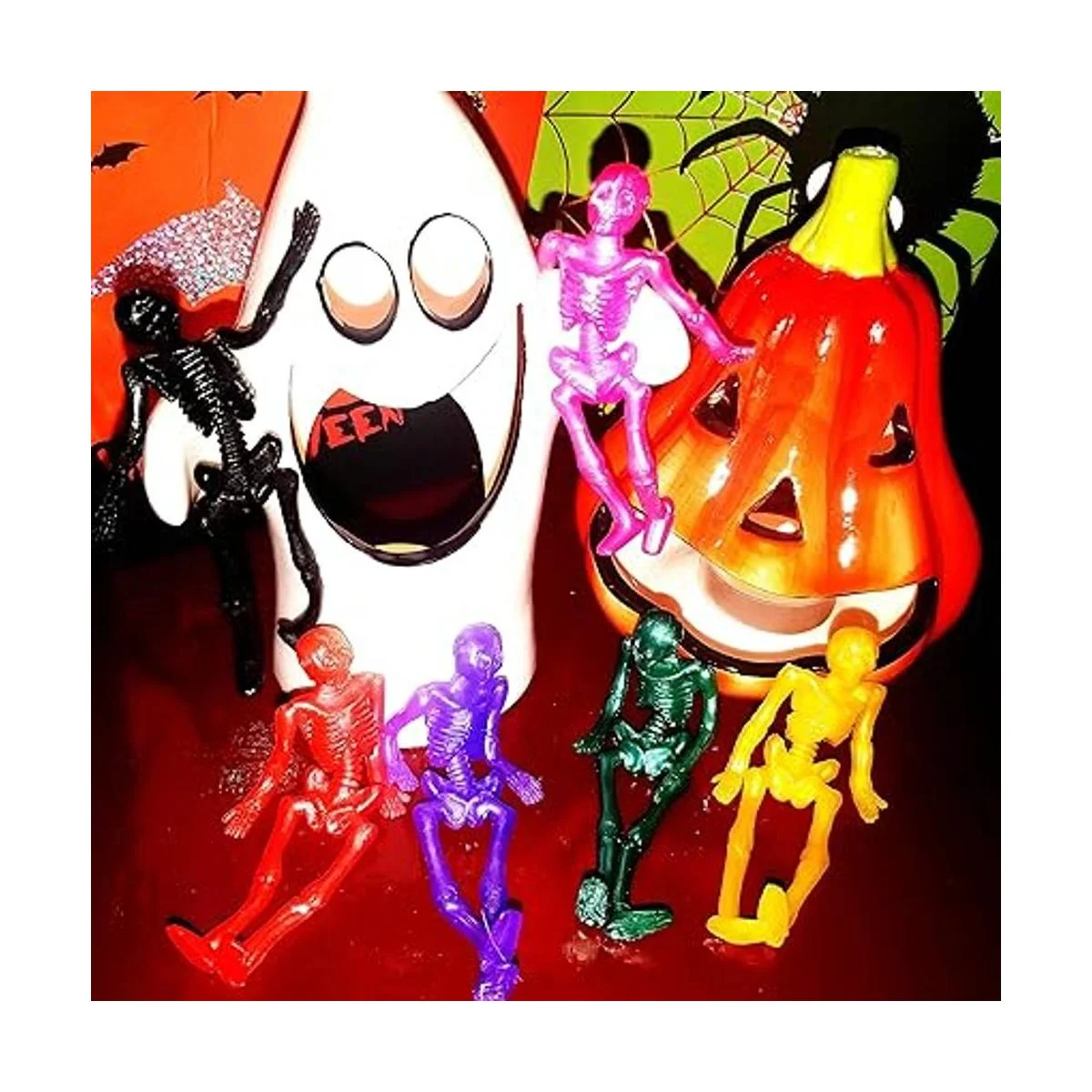 Estos esqueletos de goma son grandes juguetes de broma para jugar bromas con las personas Son perfectas para llenar las cestas de Pascua, recuerdos de fiesta, intercambio de clases del día de San Valentín, fiestas de cumpleaños, viajes de camping, trucos o dulces de Halloween, fiesta brillante, recompensas de aula escolar, caja del tesoro, premios de carnaval, relleno de juguetes de piñata, fiestas en la playa, cocina y mucho más. El detalle puesto en estos juguetes elásticos hace que se vean aterradores como decoraciones de Halloween o en el día de los inocentes.