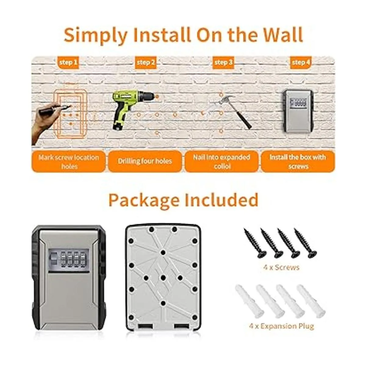 Fácil de instalar y usar: el paquete incluye todos los accesorios de montaje necesarios que consisten en 4 tornillos y 4 tapones de expansión de nailon, un gancho desmontable para llaves e instrucciones idioma español no garantizado. Simplemente monta esta caja de seguridad en la pared u otra superficie dura y asegúrate de que está montada firmemente.