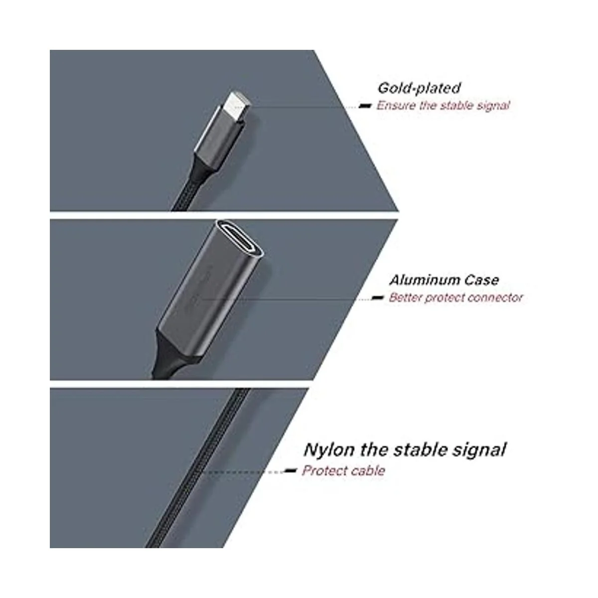 Longlast Life: The combination of Aluminum shell and nylonbraided cable provides you with a goodquality Thunderbolt to HDMI adapter. The quality braided jacket assures excellent connections during usage. This Mini DP to HDMI adapter highlights both the design and the quality.