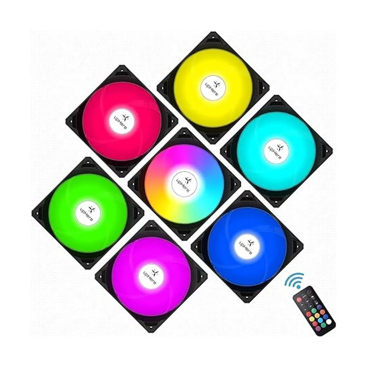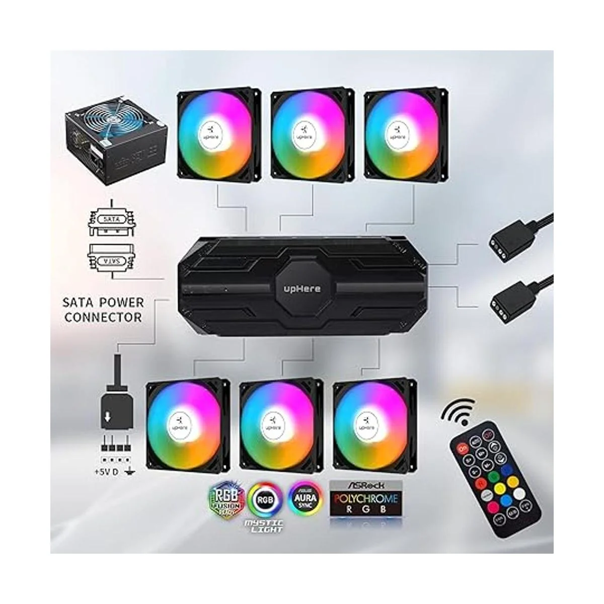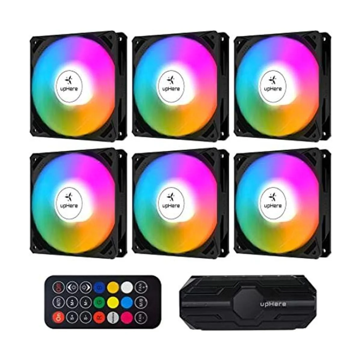 upHere Ventilador de caja de 4.724 in, paquete de 6 ventiladores LED de refrigeración de PC, placa base direccionable ARGB de 5 V, controlador SYNCRC, velocidad de enfriador colorida ajustable con cubo de control de ventilador, edición negra