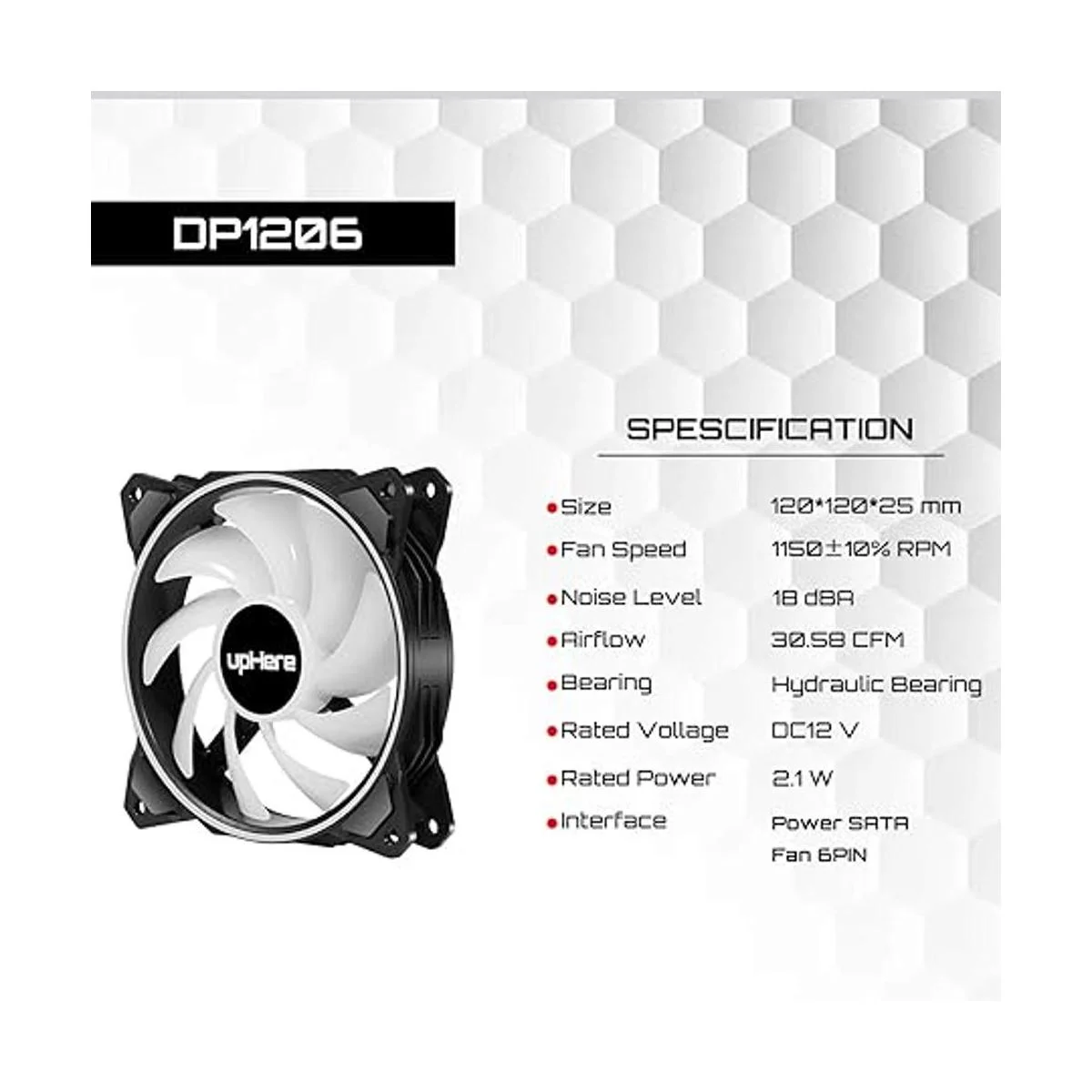 upHere Ventilador de carcasa RGB de 4.724 in, doble halo RGB LED, control remoto, edición silenciosa, ventilador LED de color ajustable, para fundas de PC, paquete de 3, DP12063