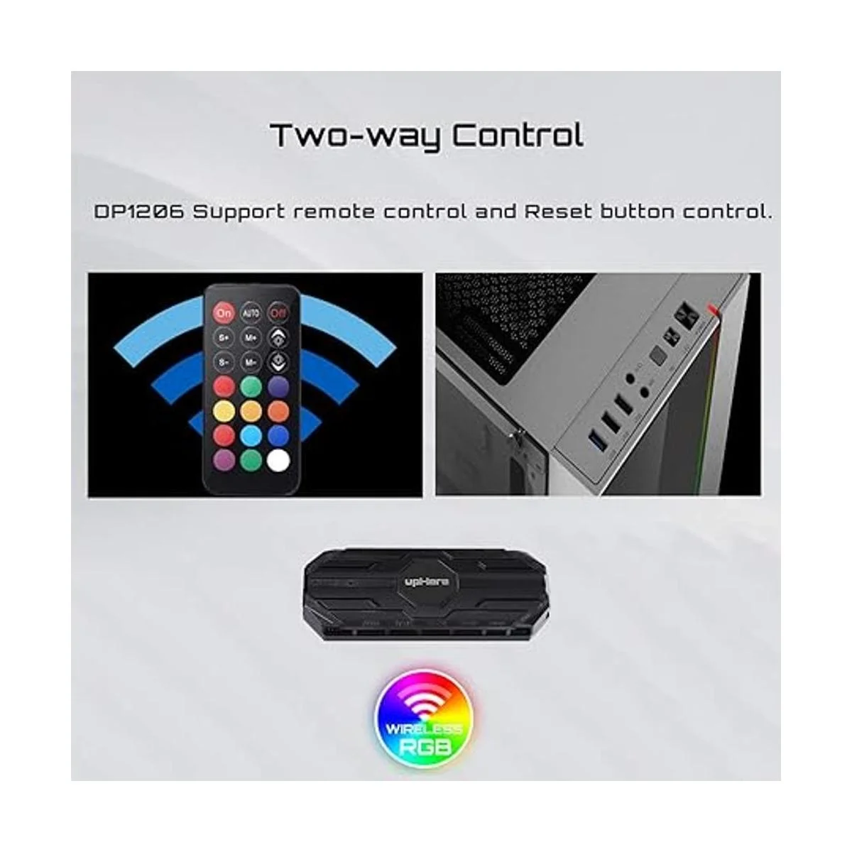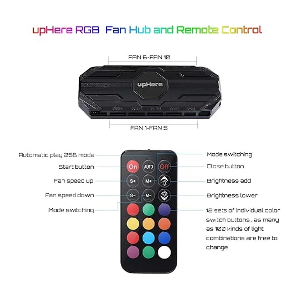 Con el mando a distancia upHere de 21 teclas, puedes ajustar instantáneamente los efectos de retroiluminación LED, los colores, el brillo y la velocidad del ventilador.
