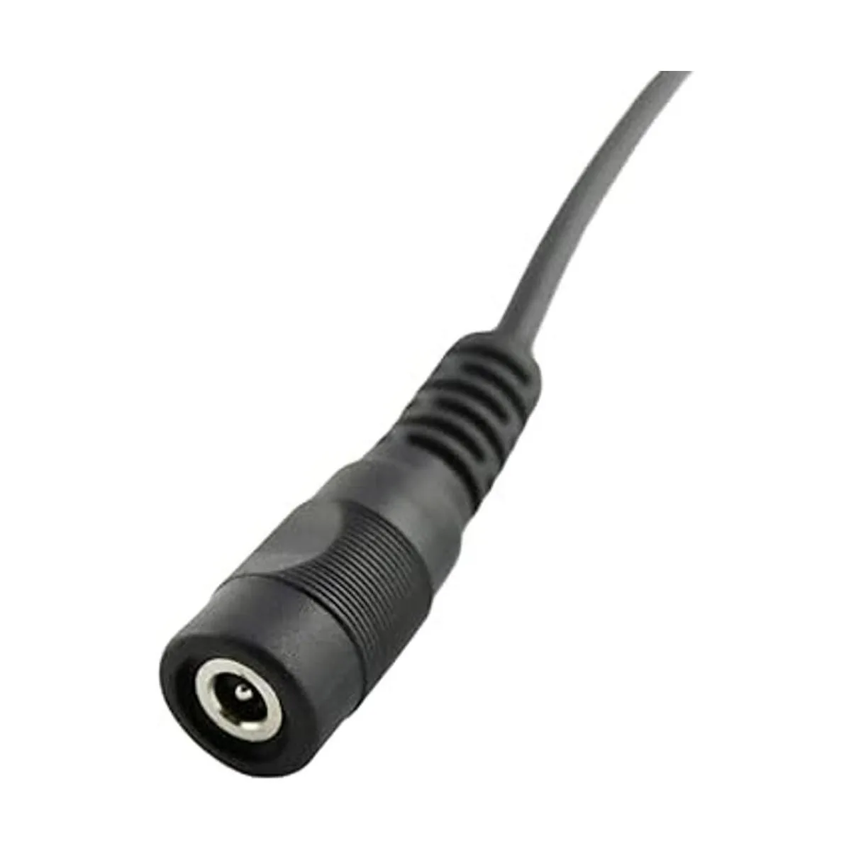 Viene con conector hembra en uno y un enchufe macho en el otro para extender el alcance de la fuente de alimentación CC.
