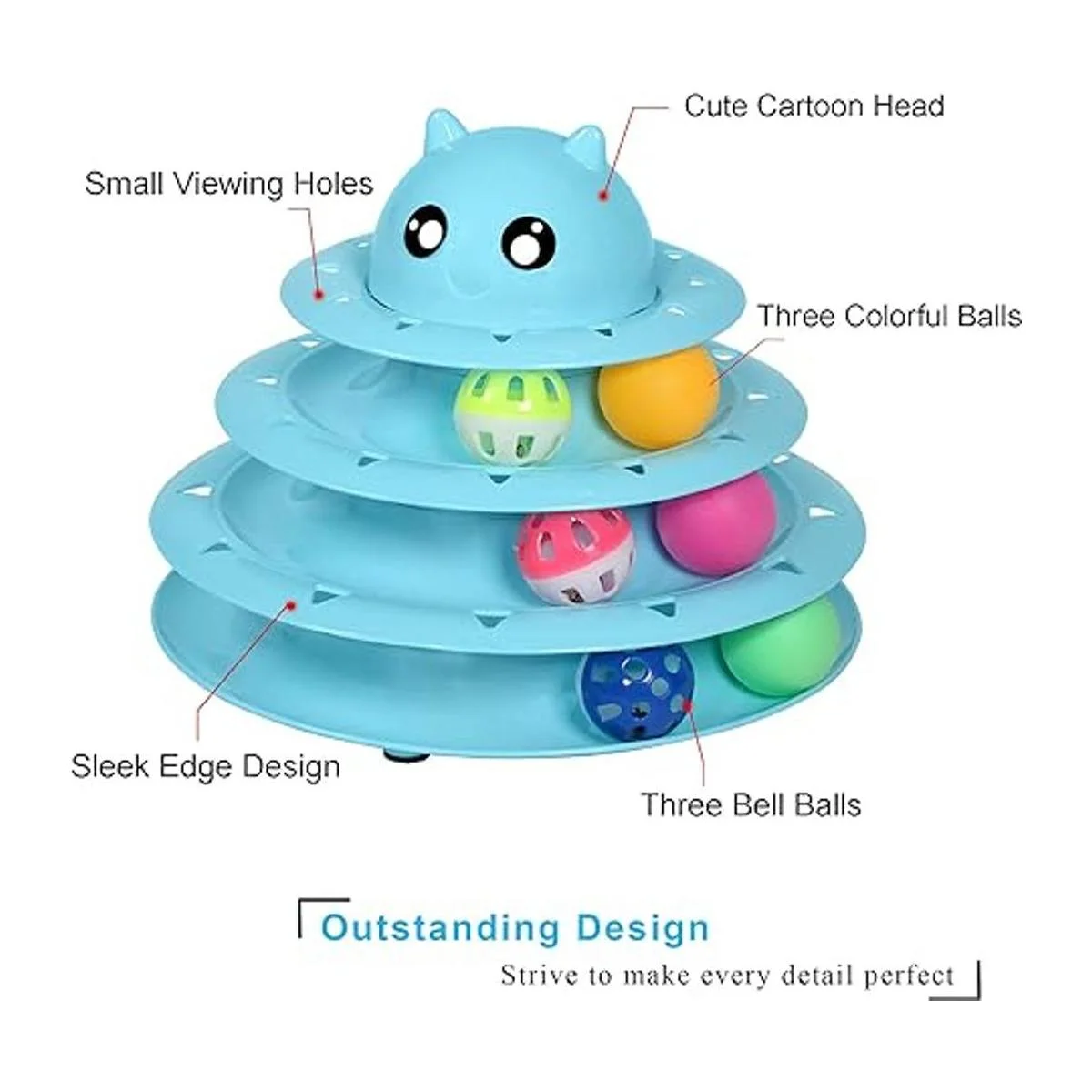 Construcción apilable y resistente: este juguete para gatos está hecho de polipropileno ultra fuerte y resistente a desgarros que soporta las locas rascadoras de gatos, una capa múltiple desmontable para una fácil limpieza, con una base antideslizante para evitar que el producto se mueva. Por lo tanto, es perfecto para uno o más gatos.