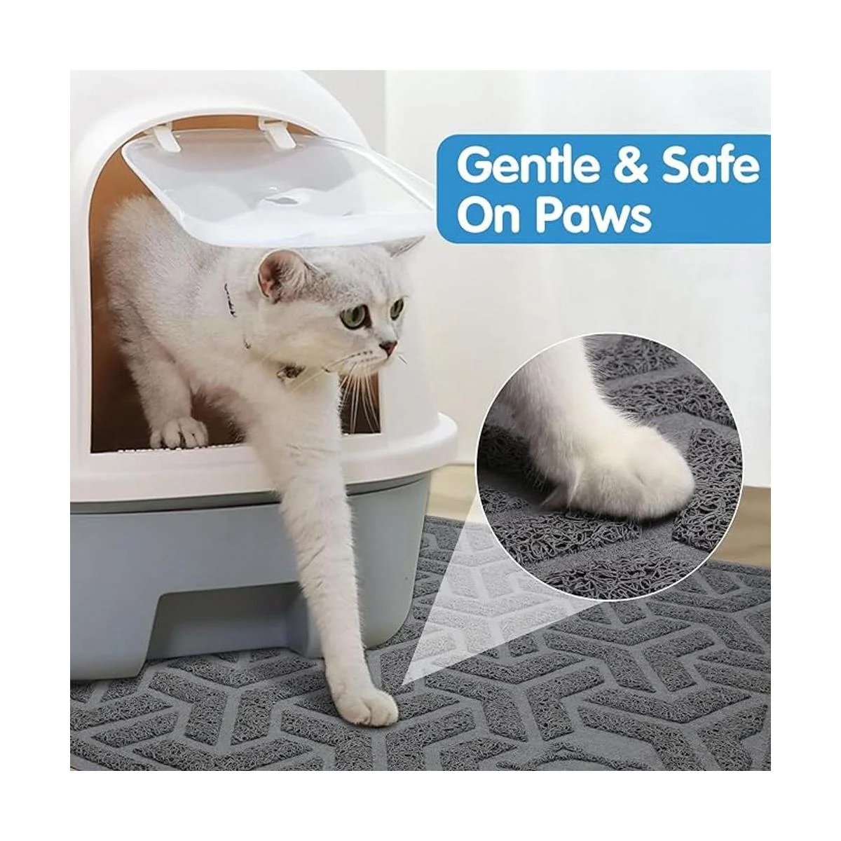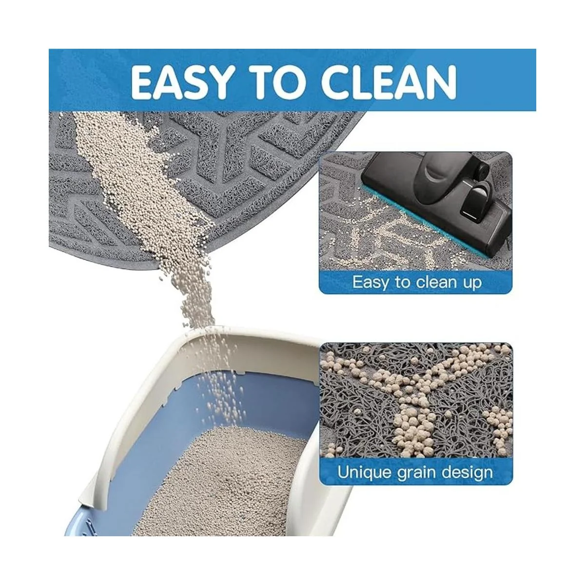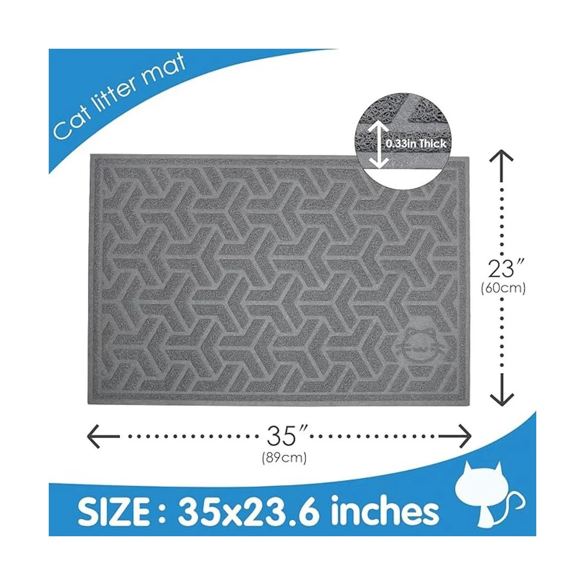Tamaño grande: 35 pulgadas de largo x 23.6 pulgadas de ancho x 1/3 pulgadas de alto. Nuestro tamaño grande y generoso significa más control de dispersión alrededor de la caja de arena para gatos, reduce tu limpieza y proporciona a tu gato más espacio para vivir.