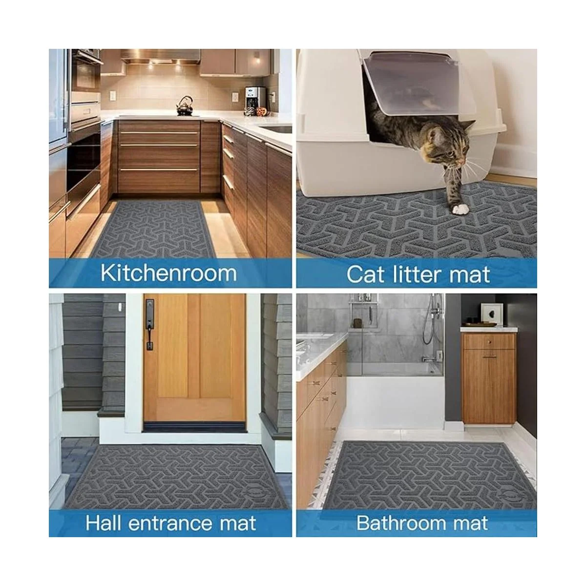 Multiusos: la alfombrilla simple y elegante también se puede utilizar como tapete de zapatos, tapete de bienvenida, tapete de puerta delantera, tapete de arena para gatos, tapete de entrada, tapete de alimentación de mascotas. La función antideslizante e impermeable se puede utilizar para el diseño del hogar, tapete de bienvenida frontal interior y alfombra de cocina, tapete de suelo, dormitorio, puerta trasera, lavandería, sala de estar, etc.
