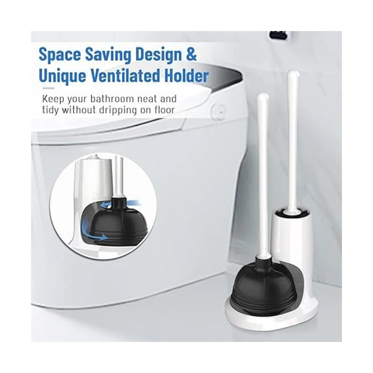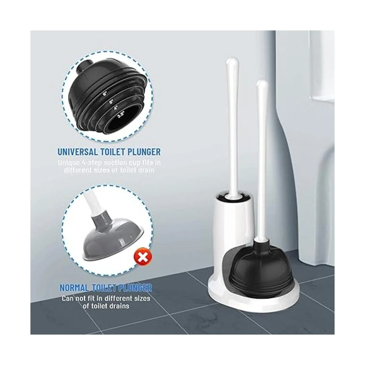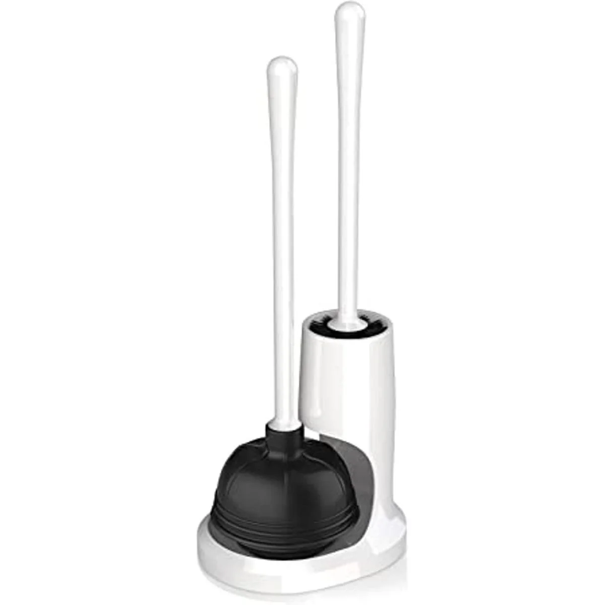 uptronic Desatascador y cepillo de inodoro, cepillo de cuenco y émbolo de inodoro único con soporte, combinación de limpieza 2 en 1 con soporte moderno para carrito blanco, 1 juego