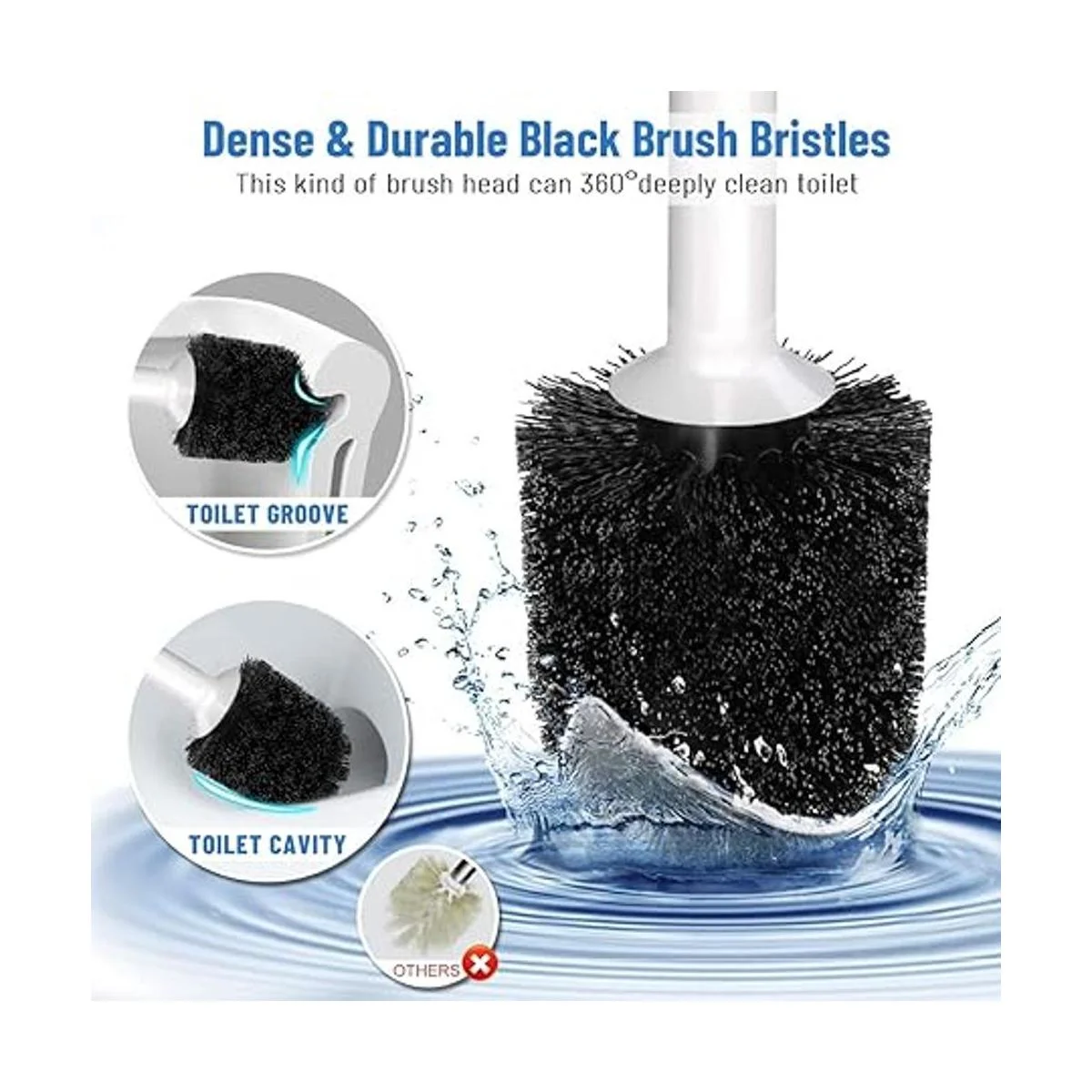 Cabezal de cepillo ergonómico de gama completa: equipado con cerdas sin desprendimiento en color negro, el cepillo de inodoro redondo de 360 elimina eficazmente las manchas de cada esquina de los inodoros de porcelana sin sucumbir a la decoloración o manchas.