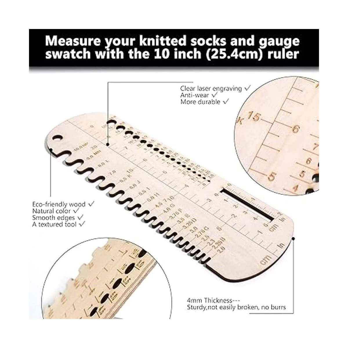 UPTTHOW Calcetín Ruler tejer ganchillo tamaño medida gancho calibre 10 pulgadas bloque de calcetines de madera Swatch Needle DIY herramientas de tejido hechas a mano regalo para niños y adultos