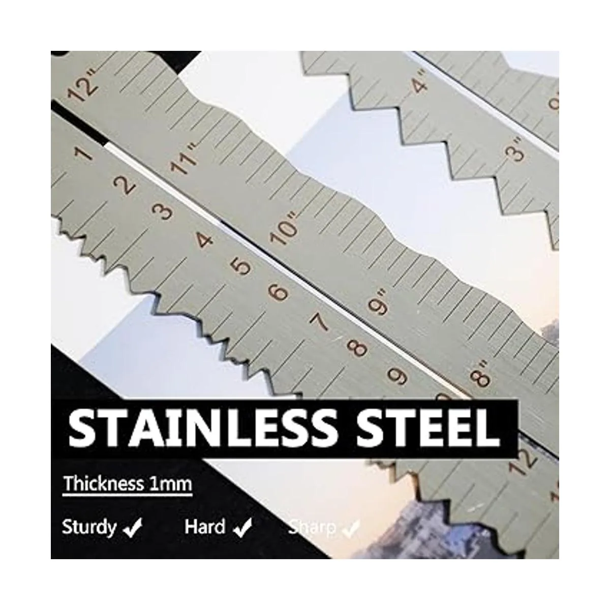 UPTTHOW Regla de papel de metal de acero inoxidable, regla de manualidades para cortar papel a línea ondulada, bordes irregulares, herramienta de medición de 12 pulgadas para ingeniería, escuela, oficina, arquitecto y dibujoF