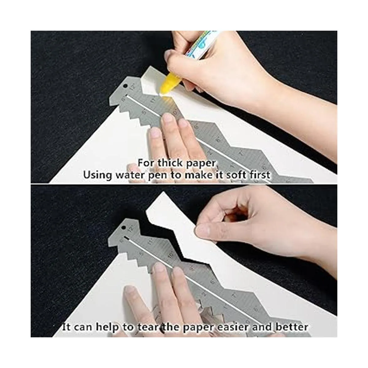 Múltiples usos: úsalo en cualquier papel fibroso que se pueda romper: papel de acuarela, papel fotográfico, papel láser, papel de inyección de tinta. La regla multifuncional es adecuada para la oficina, la escuela, el dibujo, el diseño de bricolaje, etc.