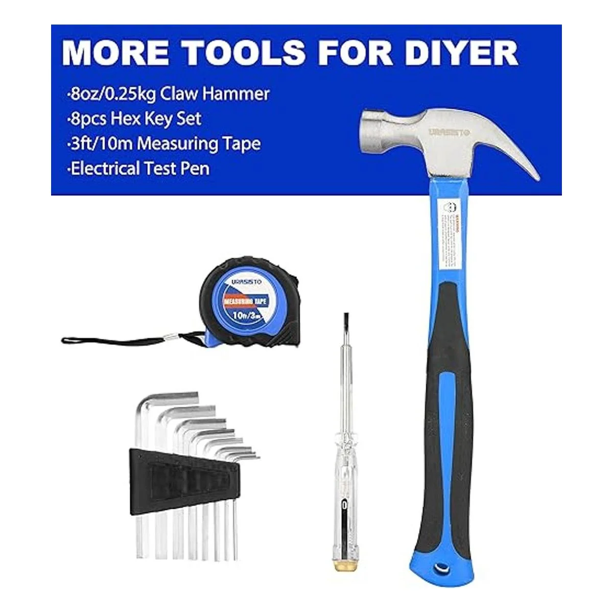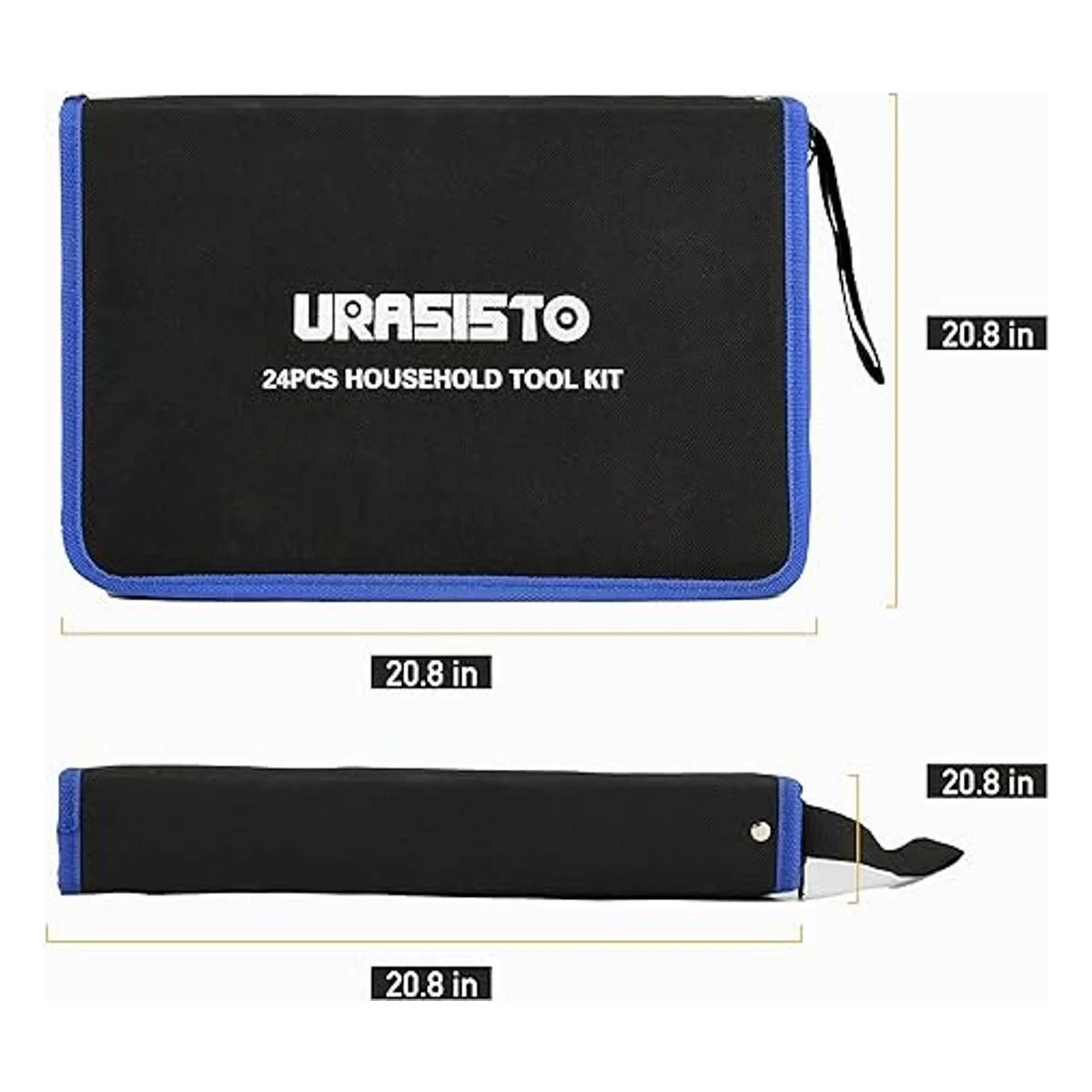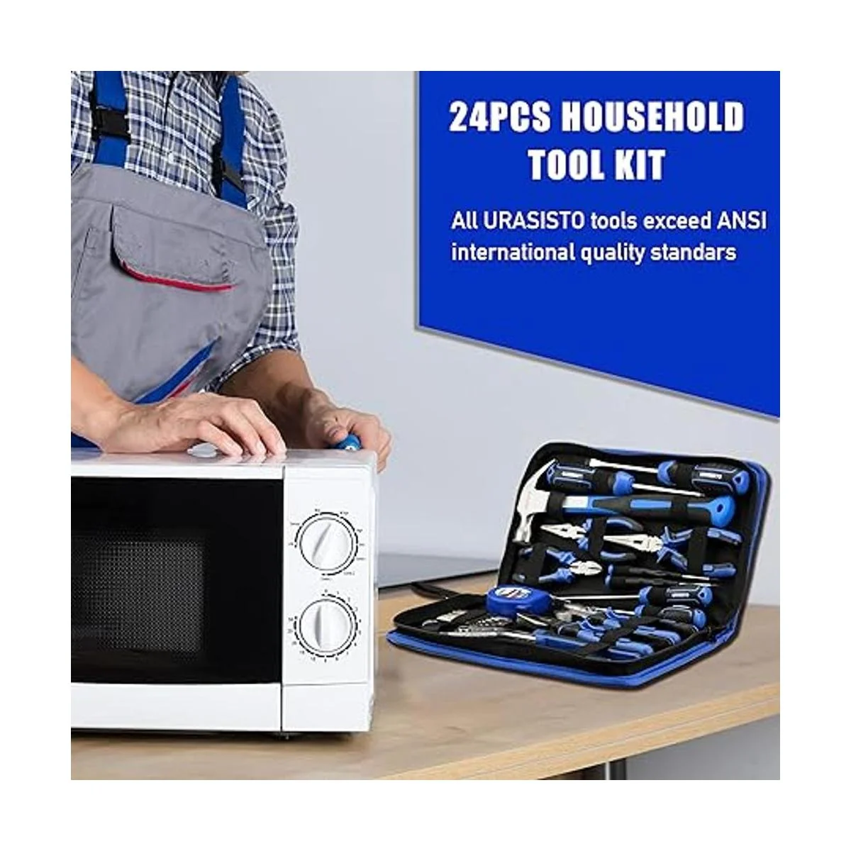 URASISTO Juego de herramientas de mano de reparación de 24 piezas para hombres, bolsa de herramientas con martillo, destornillador, alicates, juego de llaves con bolsa de almacenamiento