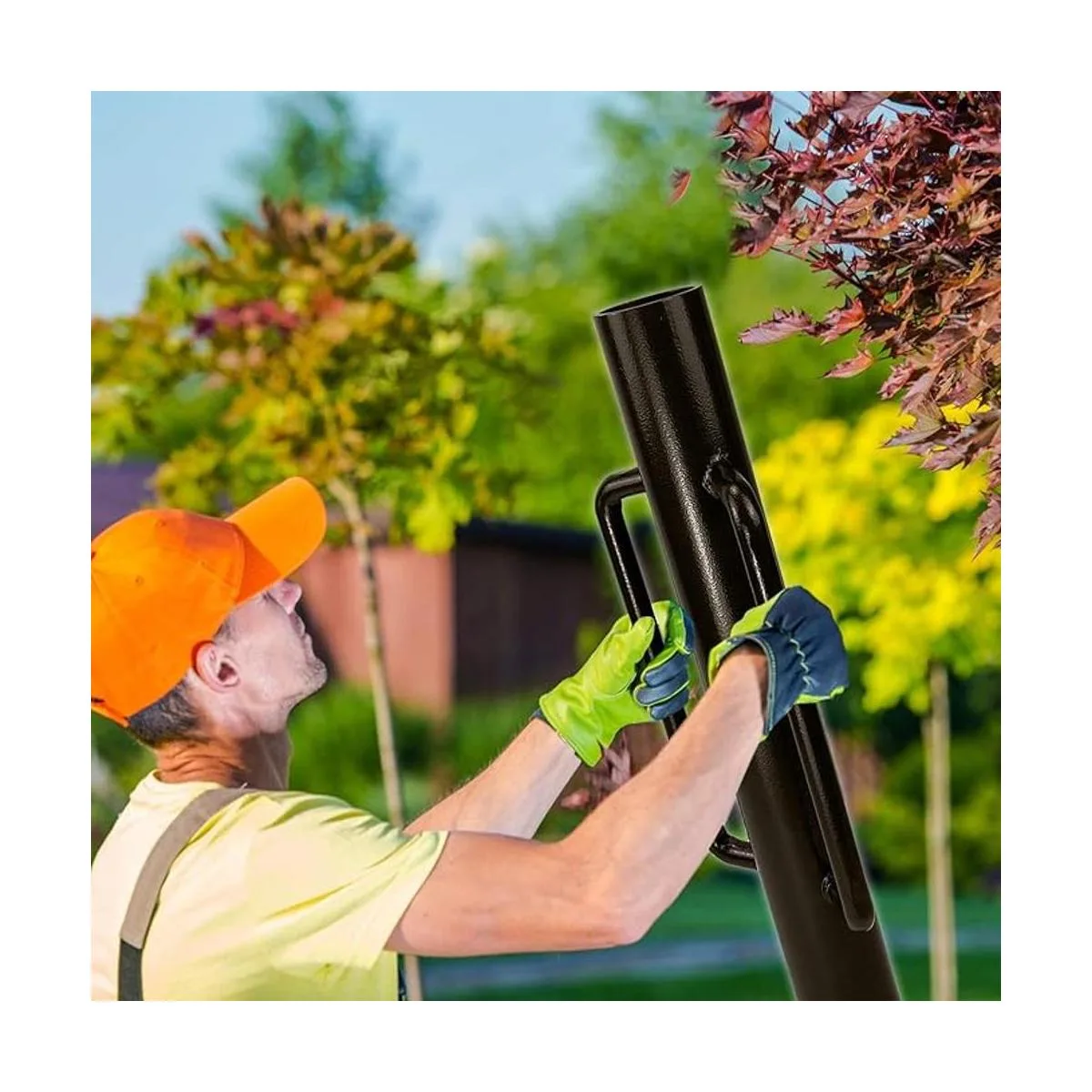 Fácil de usar: el mango cerrado de diseño ergonómico, excavadora de postes para valla tiene un tubo resistente. El pounder puede proporcionar un mejor agarre y un mejor control.