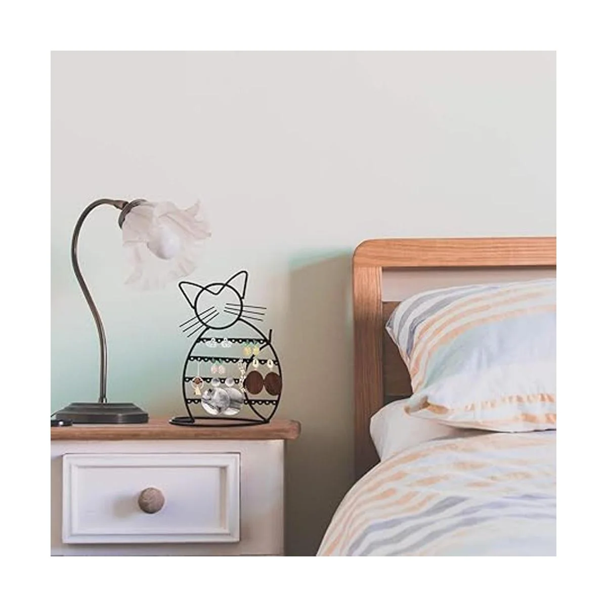 Organizador de joyas: organiza y muestra tu colección de aretes con el bonito organizador de aretes en forma de gato de Urban Deco. Este diseño de soporte para aretes te proporciona un acceso simple a tus aretes, anillos, collares y pulseras, eliminando enredos y te permite obtener lo que necesitas sin tener que quitar todos tus artículos de la pantalla. Este soporte de joyería único y elegante es un buen regalo para los amantes de los gatos de todas las edades.