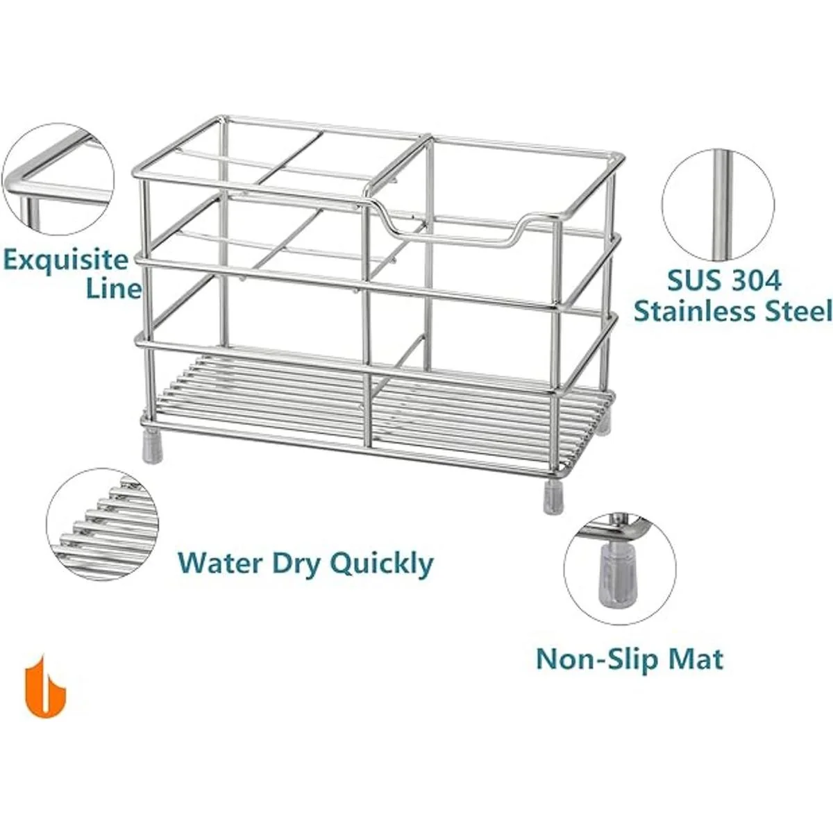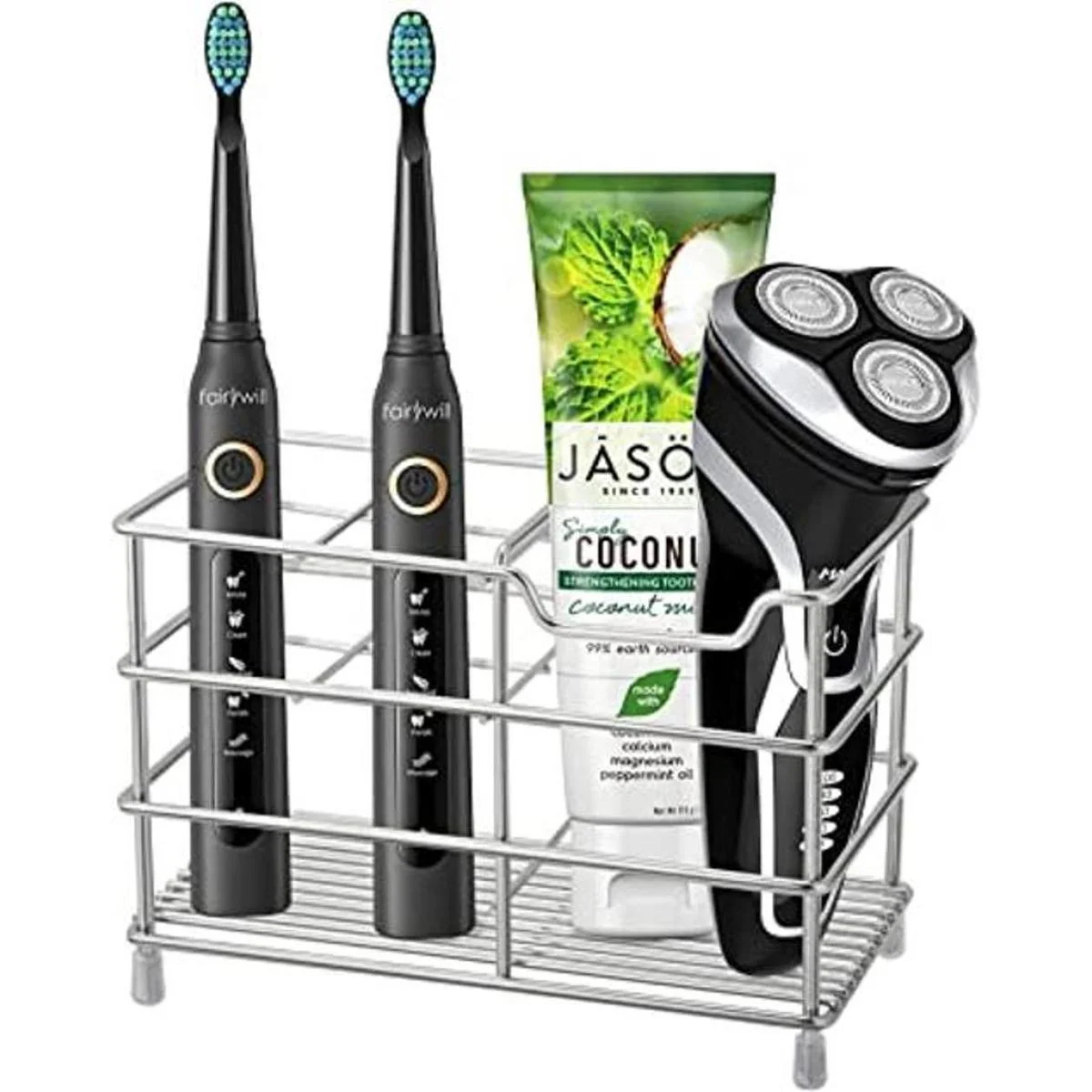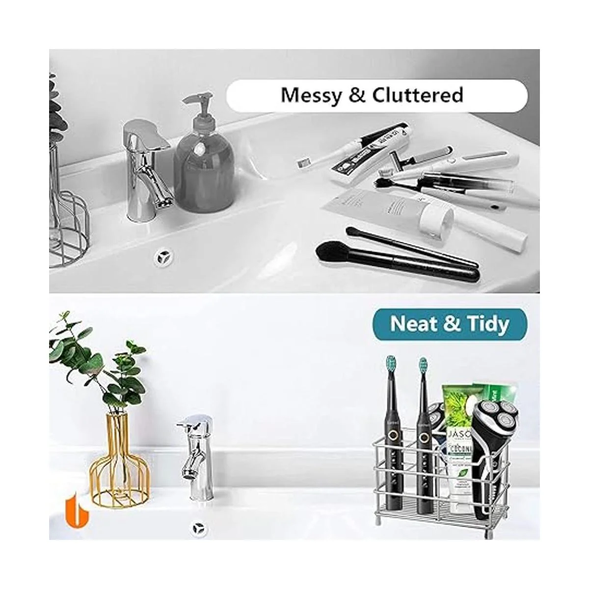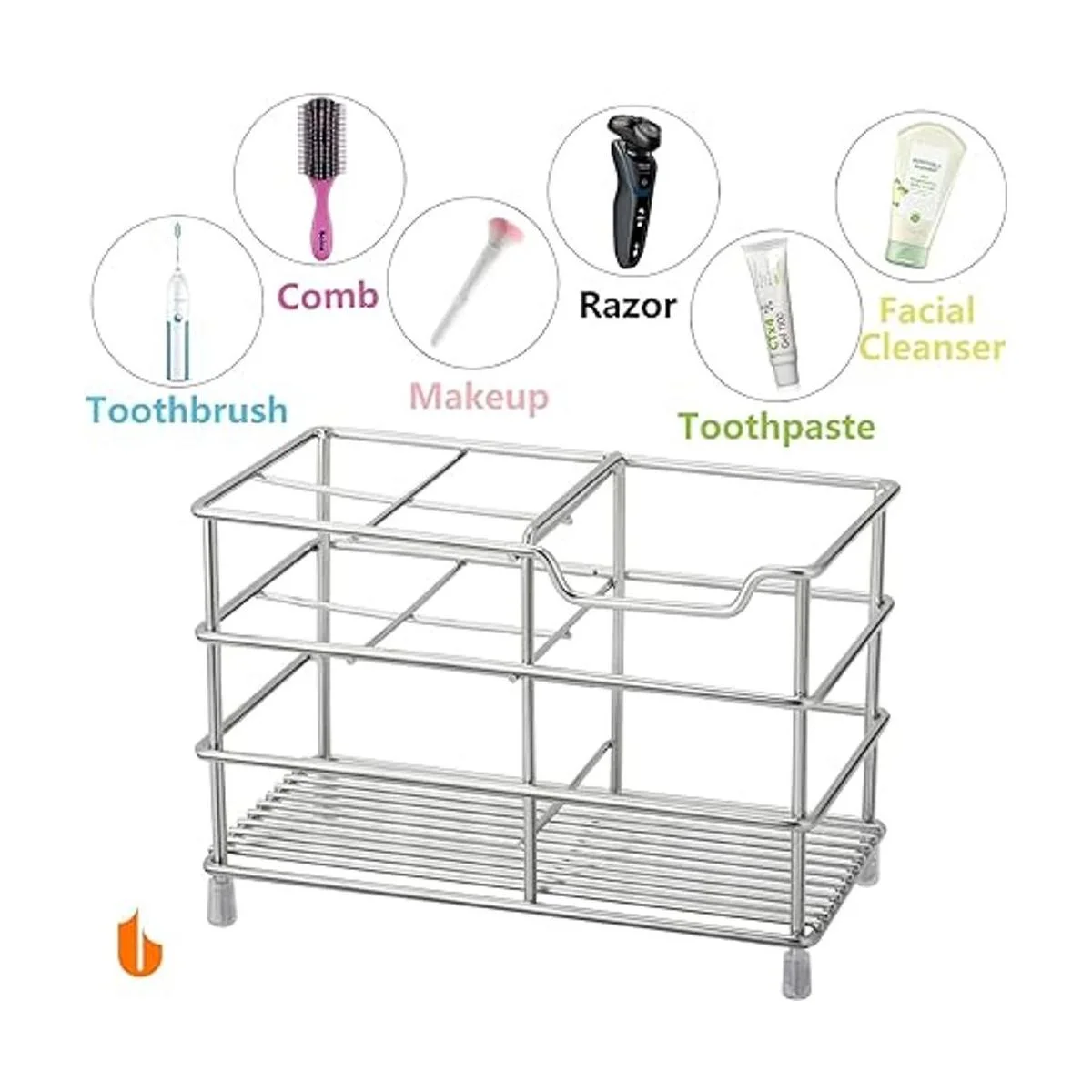 Urbanstrive Soporte para cepillo de dientes de baño de acero inoxidable 304, soporte para pasta de dientes, organizador de accesorios de baño plateado, grande
