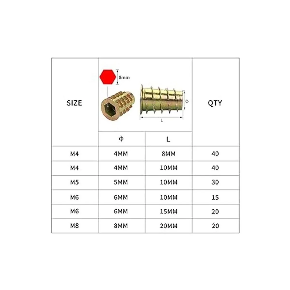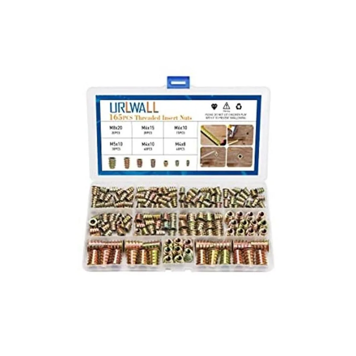 URLWALL 165 piezas de tuercas de insertos roscados, kit de herramientas surtido de insertos de madera, M4M5M6M8 tornillos para muebles de madera