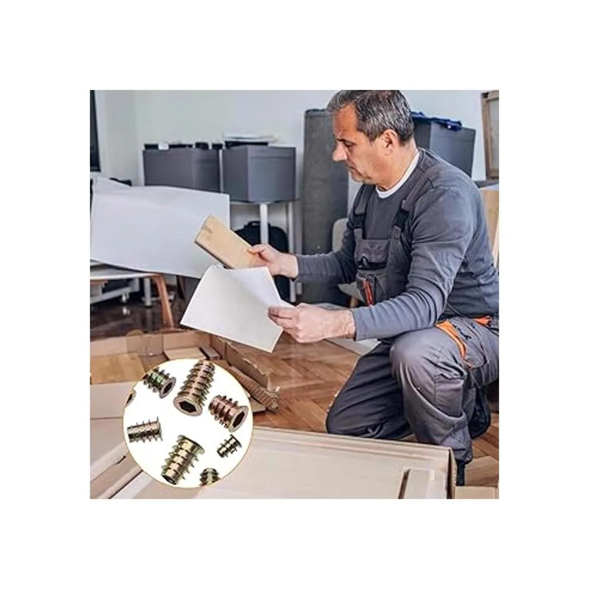 Amplia aplicación: adecuado para maderas blandas de pino, contrachapado, tableros de fibra, etc., funciona perfectamente en la combinación de muebles. Piezas Pack de tornillos para muebles, insertos roscados para muebles de madera.