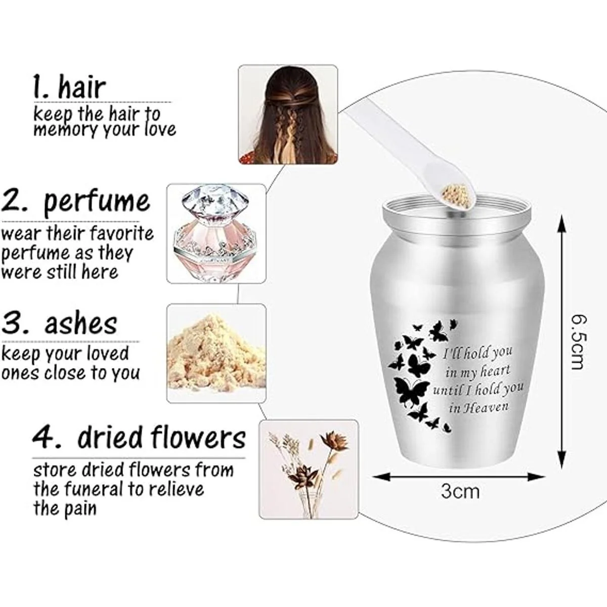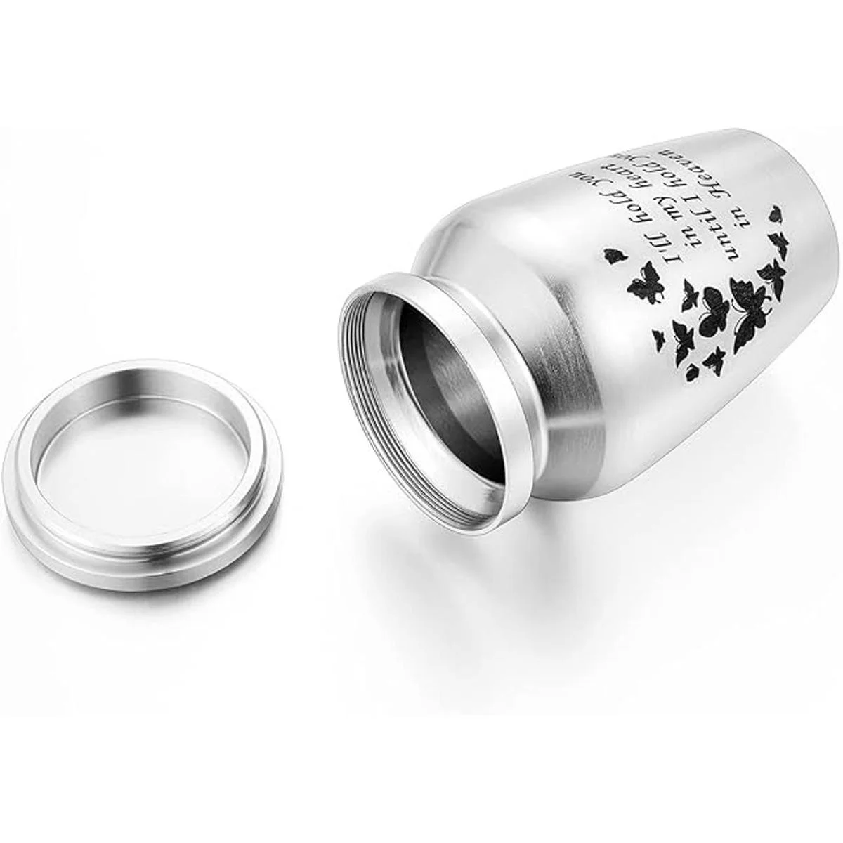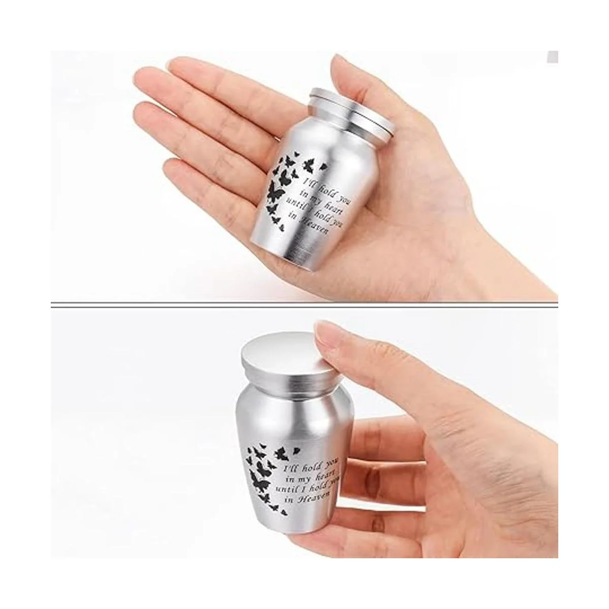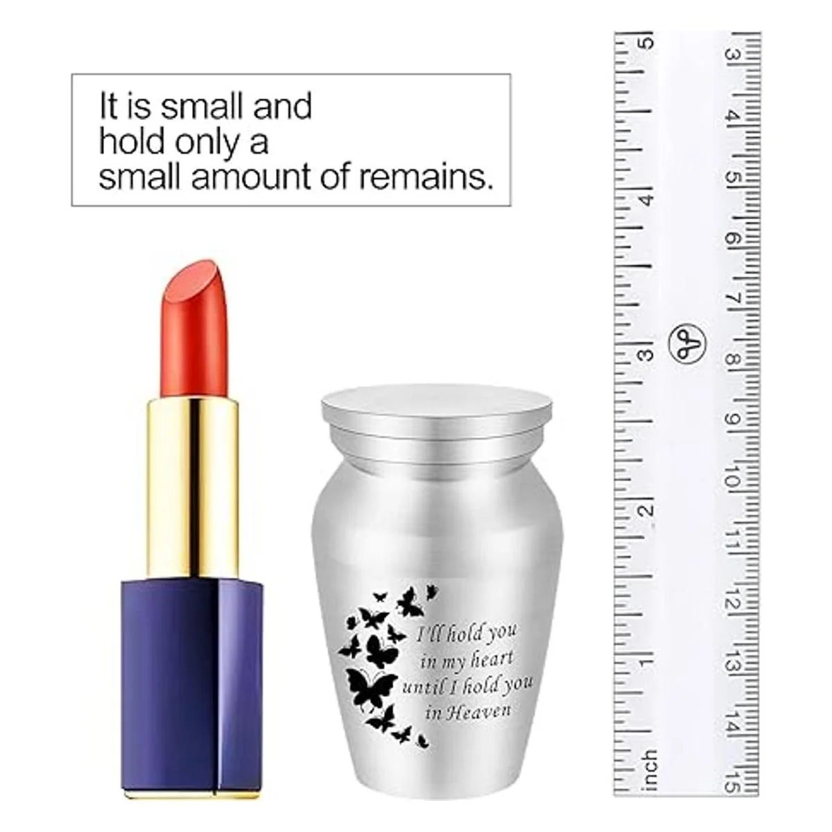 Urna pequeña para cenizas humanas, pequeña urna de recuerdo, mini urnas de cremación para cenizas, soporte de cenizas conmemorativas de aluminio, Ill Hold You in My Heart Hasta I Hold You in Heaven