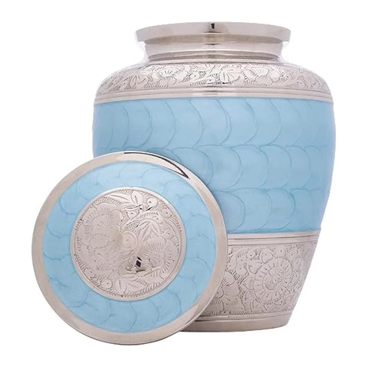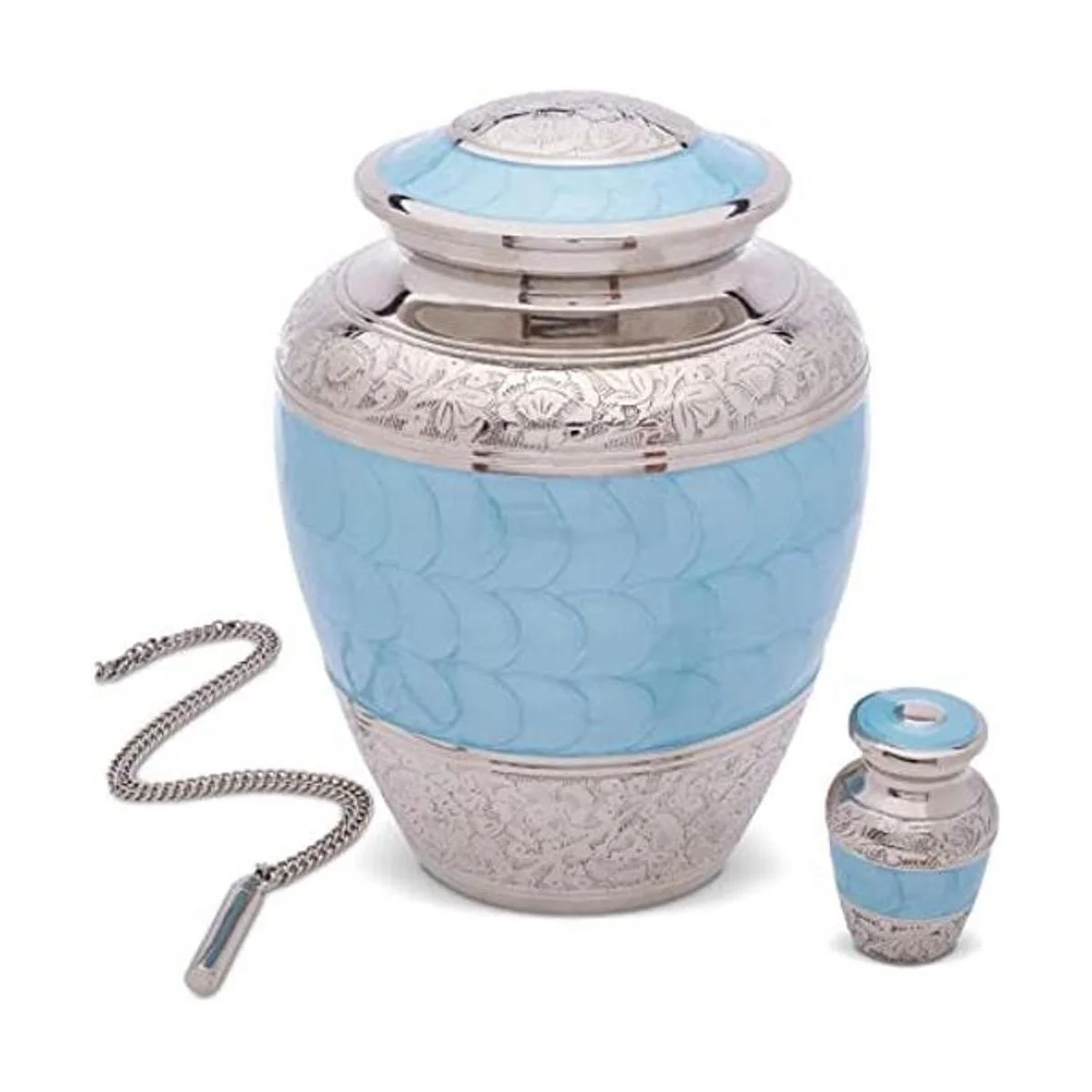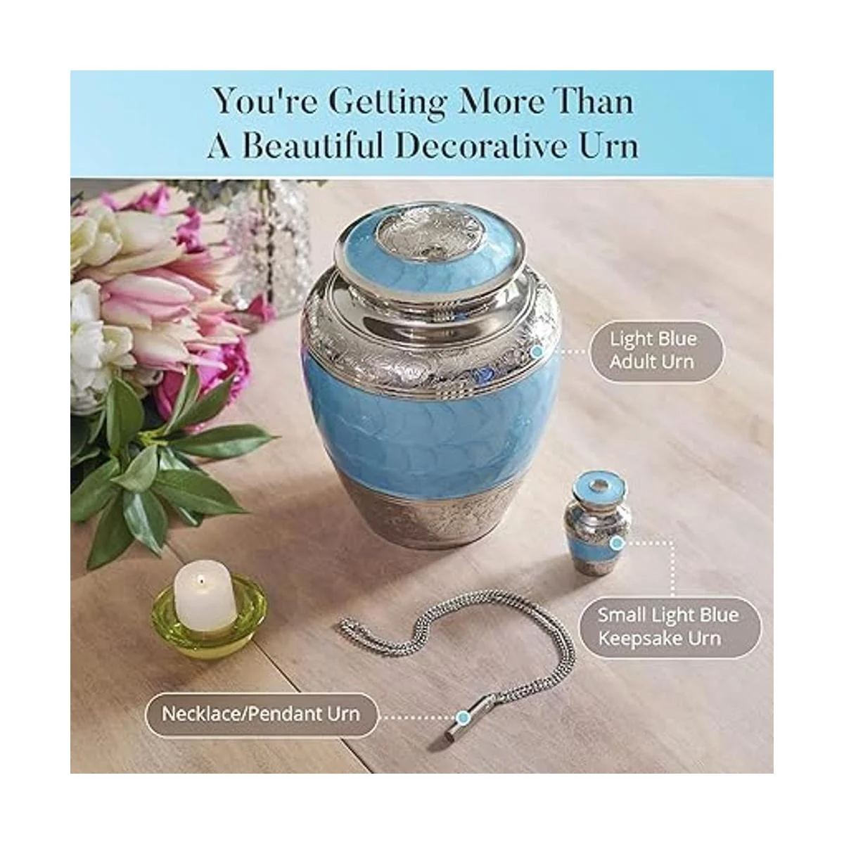 Urnas de color azul claro para cenizas humanas, adultos, hombres y mujeres, urnas grandes y pequeñas hechas a mano para recuerdos de cenizas humanas junto con un collar de cremación para cenizas