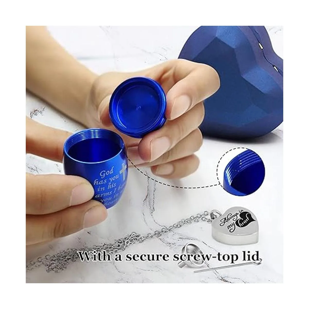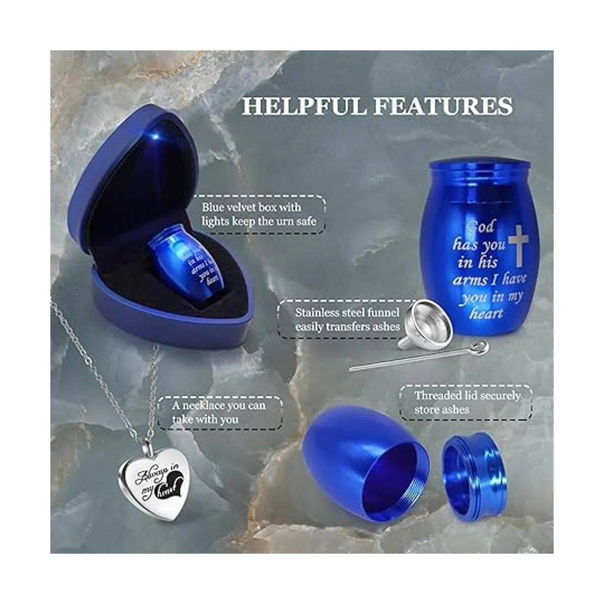 Juego de 4: este juego de soportes para cenizas incluye: una urna de ceniza en miniatura, un collar de urna para cenizas, un embudo y una funda de franela en forma de corazón.