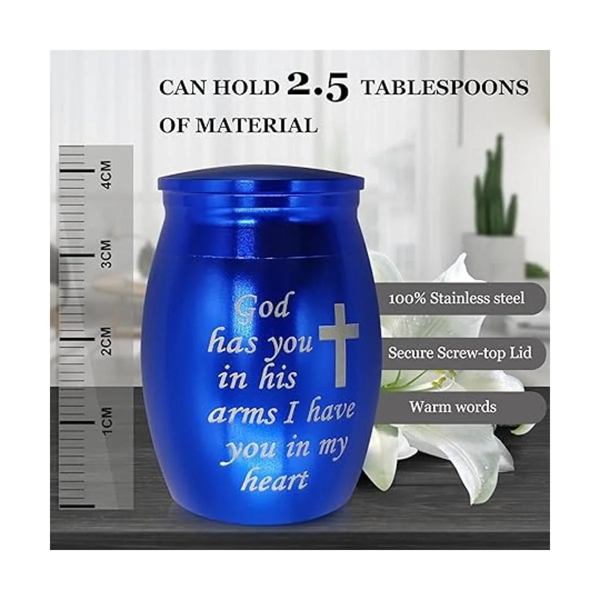 Urnas pequeñas de 1.6 pulgadas de alto para recuerdos de cenizas humanas, mini urna de fichas para compartir de acero inoxidable para adultos y bebés, soporte personal de urna de ceniza miniatura para cenizas con collar de urna y funda de terciopelo azul y embudo