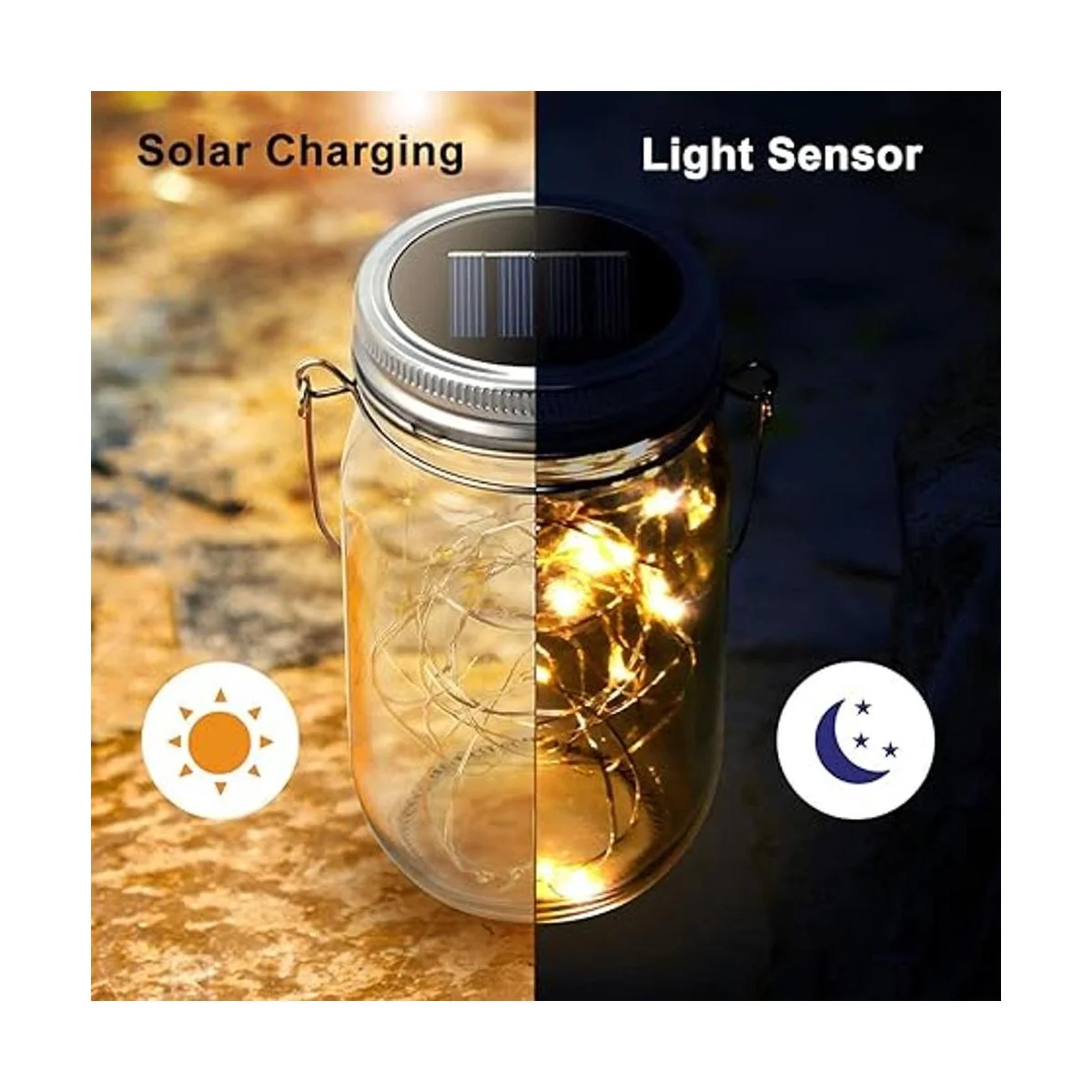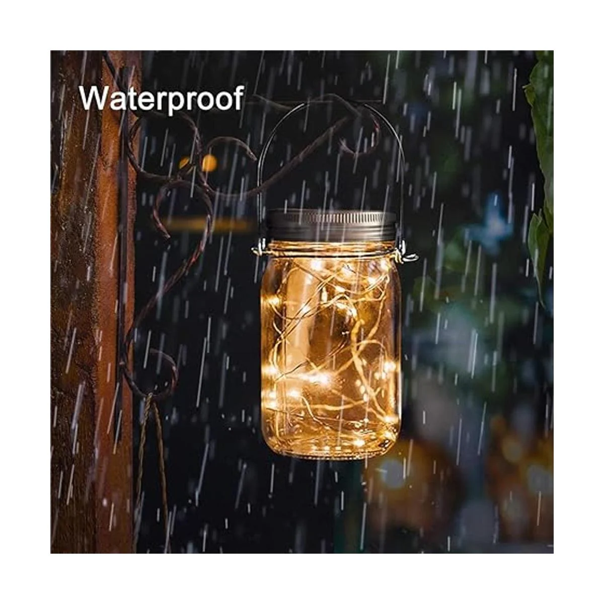 Urvoix Luces solares para tarros de masón, paquete de 8 unidades, 30 luces LED solares con tapa de tarro de hadas con 8 asas tarros no incluidos, impermeables, para exteriores, decoración de jardín, patio, patio trasero, patio