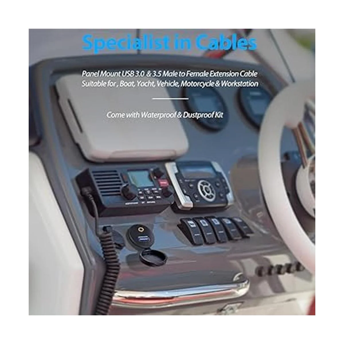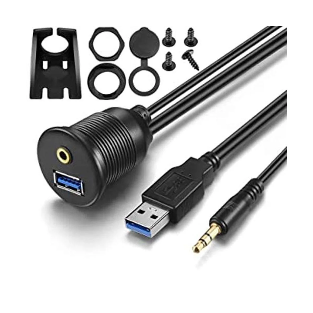 URWOOW Montaje empotrado USB 3.3 ft 3 pies 0.138 in y USB 3.0 AUX extensión de montaje, montaje en panel, para coche, barco, motocicleta
