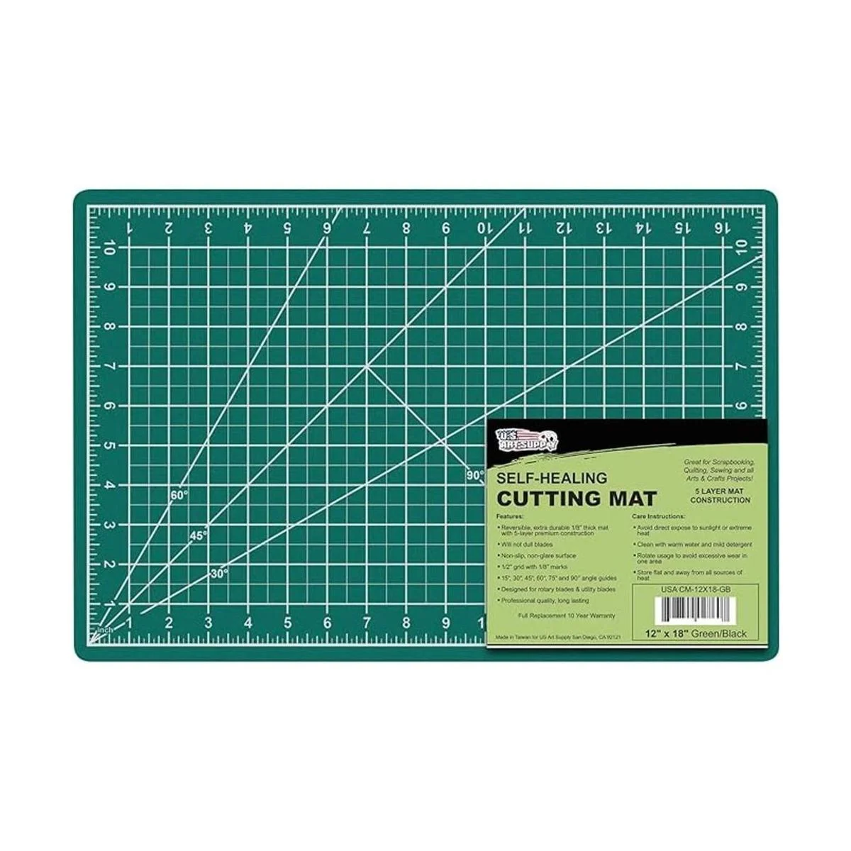 US Art Supply Self Healing Tapete de corte profesional de 30.48 x 45.72 cm. 12 x 18 pulgadas verde negro de PVC de doble cara, antideslizante, de 5 capas, ideal para álbumes de recortes, acolchados, costura, corte y confección y todos los proyectos de arte y manualidades., VerdeNegro, 12 x 18