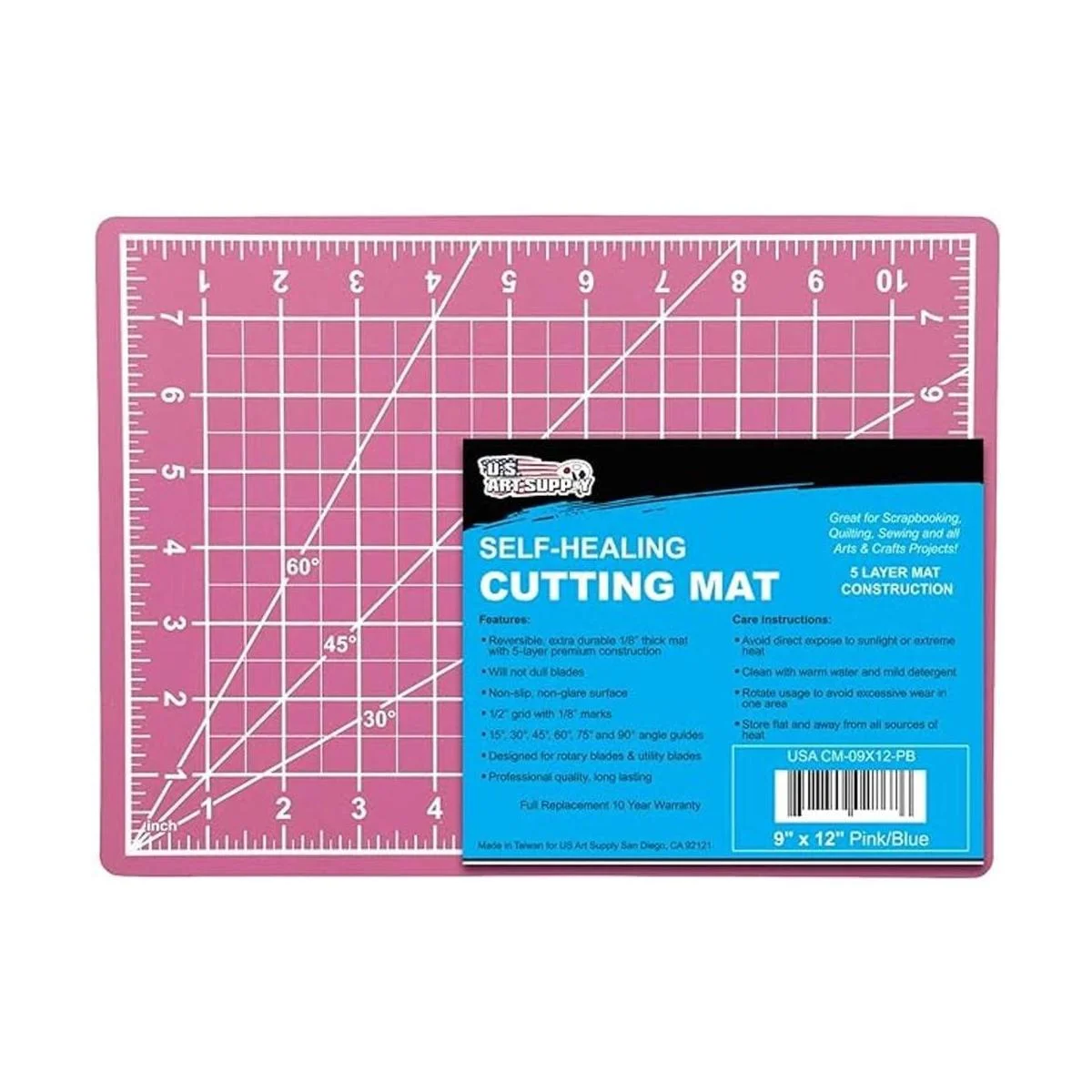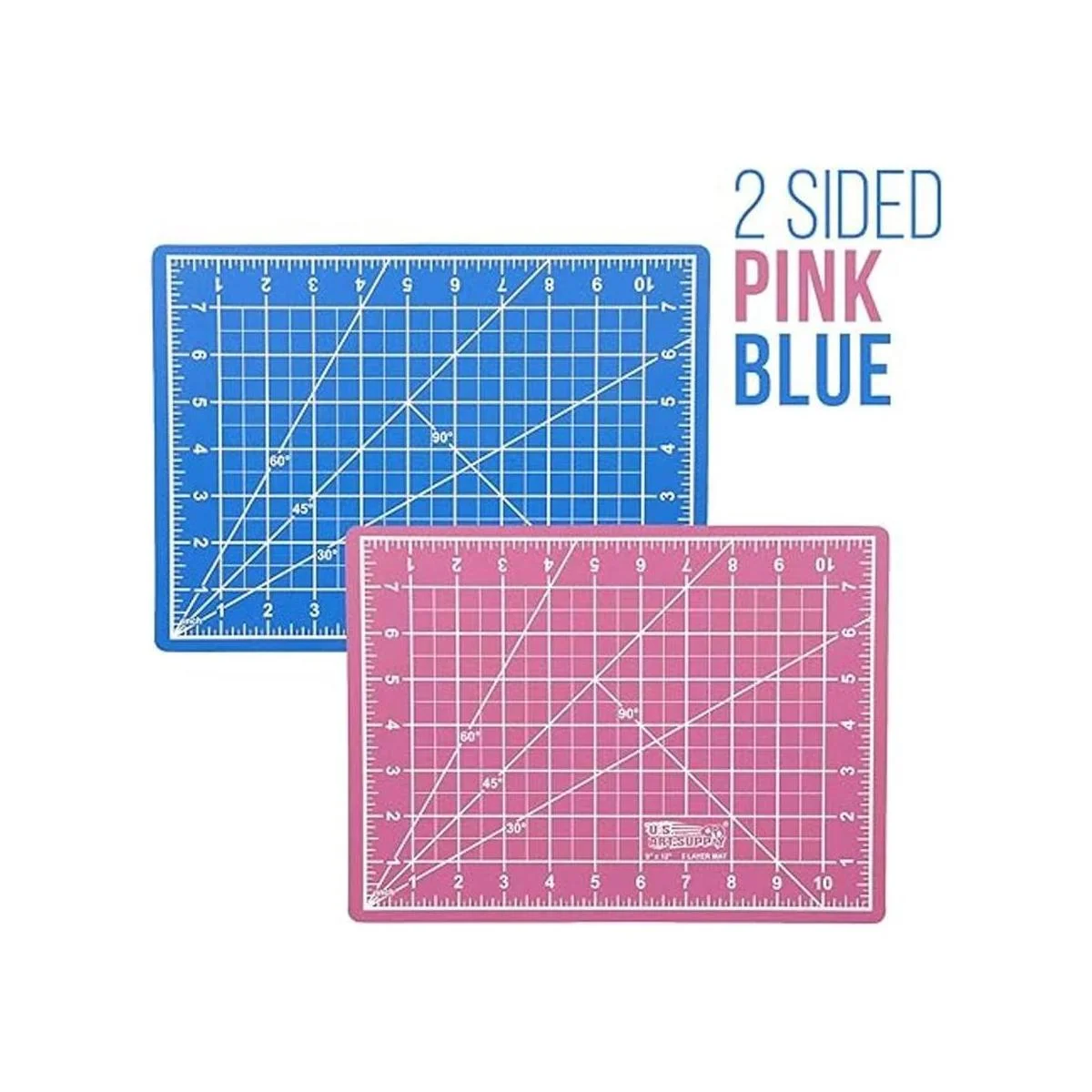 US Art Supply Tapete de corte de PVC antideslizante de 9 x 12 pulgadas, color rosa y azul, de doble cara, duradero, ideal para álbumes de recortes, acolchado, costura y todos los proyectos de arte y manualidades