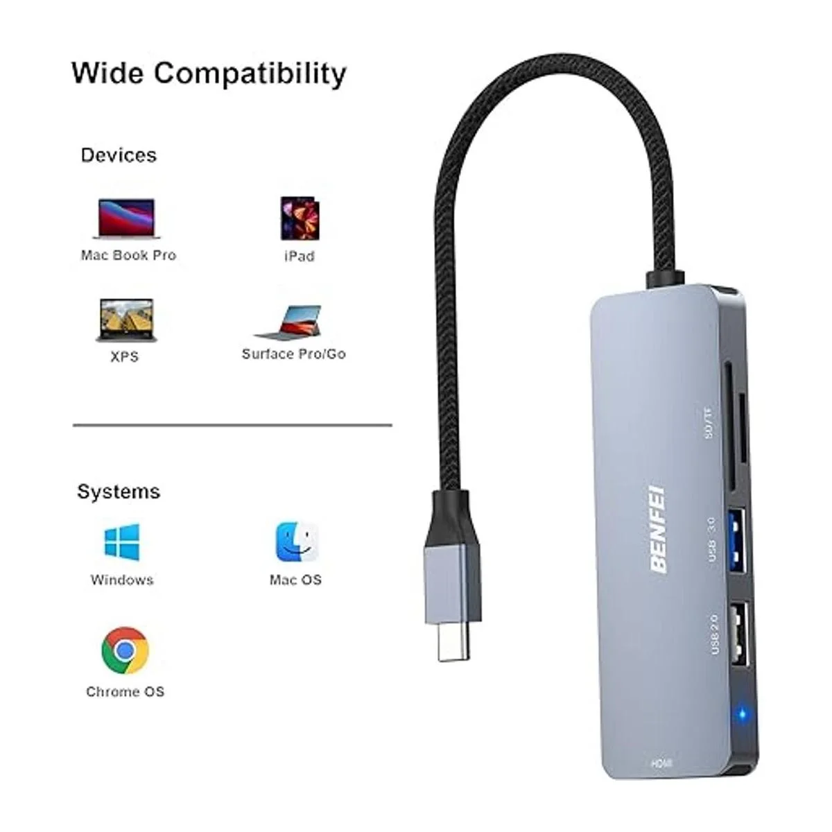USB C a HDMI, concentrador USB tipo C Benfei, 2 puertos USBC a USB, tarjeta USB C a SD/TF compatible con MacBook Pro 2022/2021/2019, Samsung Galaxy S9/S8, Surface Book 2, Dell XPS 13/15, Pixelbook y más