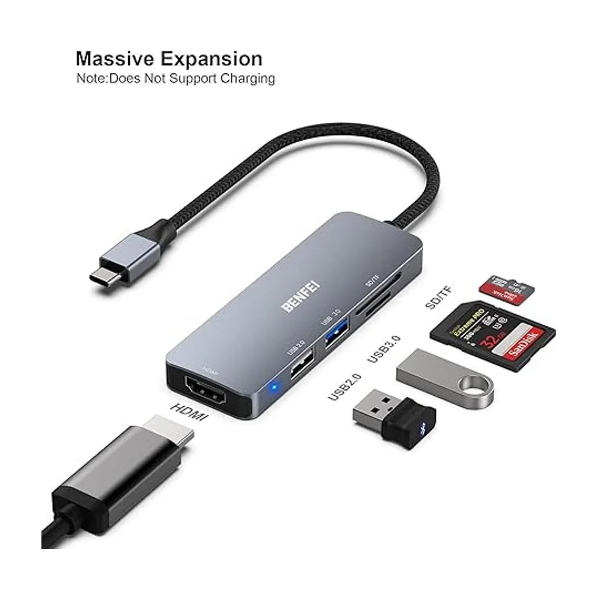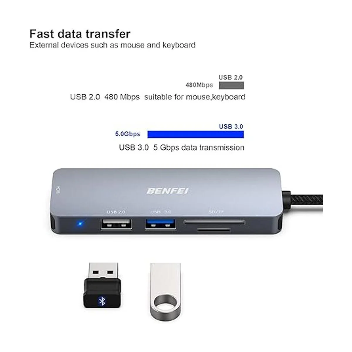 USB C a HDMI, concentrador USB tipo C Benfei, 2 puertos USBC a USB, tarjeta USB C a SDTF compatible con MacBook Pro 202220212019, Samsung Galaxy S9S8, Surface Book 2, Dell XPS 1315, Pixelbook y más