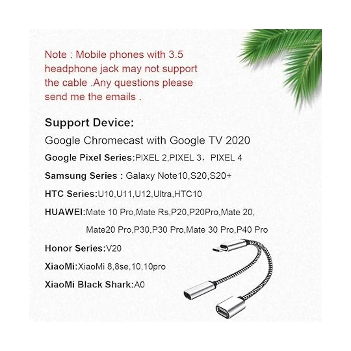 USB C OTG, adaptador de teléfono USB C 2.0 con adaptador PD de 18 W compatible con Samsung GalaxyS20 Note1020, Switch, Google Chromecast con Google TV 2020 PiKVM, impresora 3D, LGG8, Google Pixel4 XL