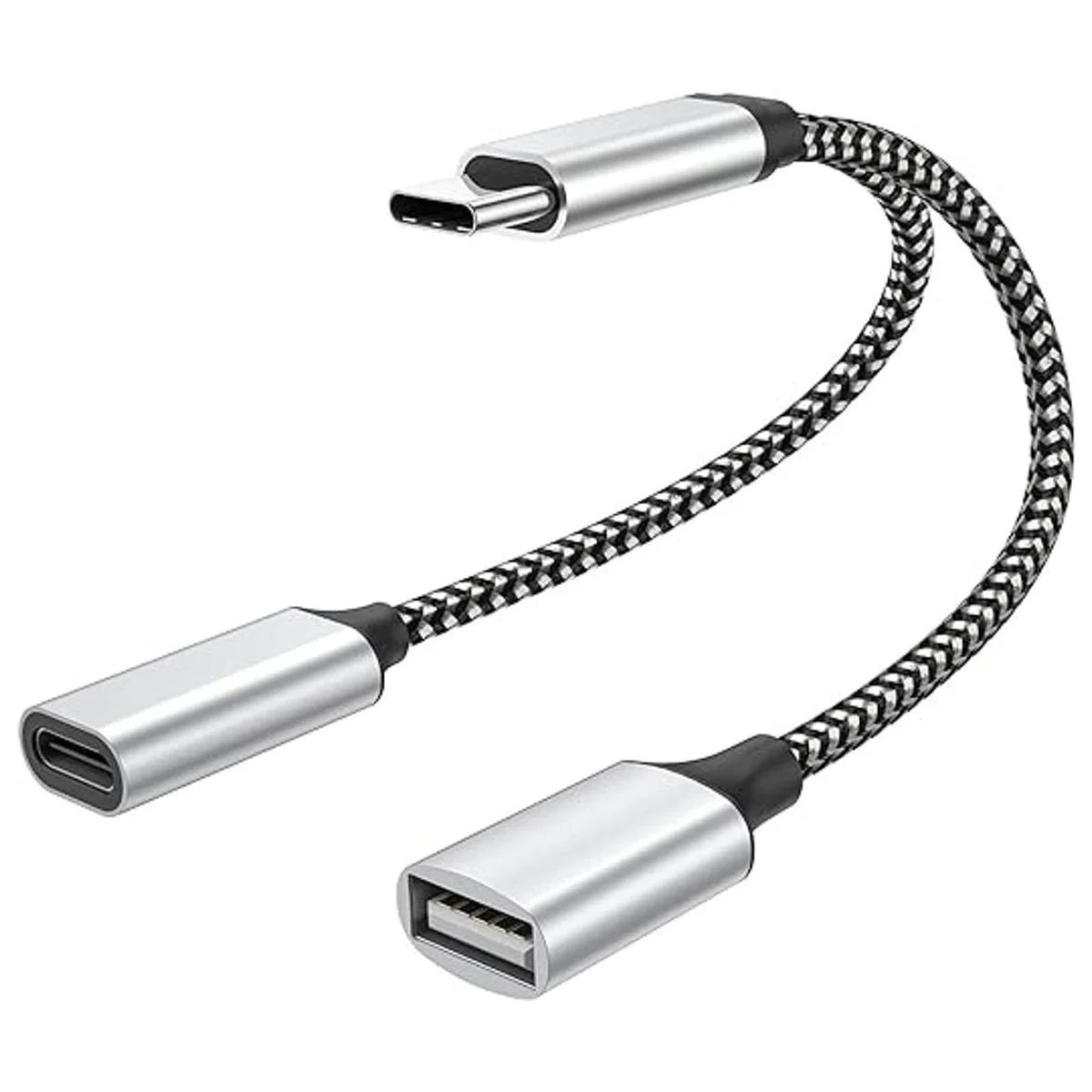 USB C OTG con alimentación: el adaptador USB C OTG con alimentación contiene un puerto de carga USBC de 18 W PD, 1 puerto USBA 2.0, conectado con un puerto de salida tipo C, proporcionando una alta transferencia de datos. Solo funciona para dispositivo USB 2.0.
