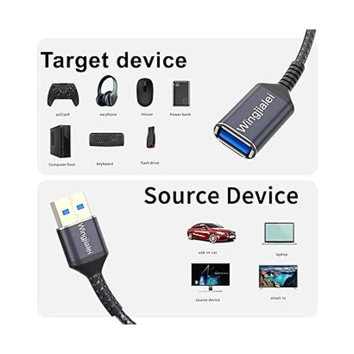 Wide Compatibility This USB extension cord is widely compatible with USB 3.0 peripherals, such as connecting to Hubs,Playstation,Xbox,USB Keyboard,Mouse,Printer,Scanner,Camera,TV,USB flash drive,SSD,HDD,Card reader,Dard drive,Laptap and PC without any data delay or data loss.