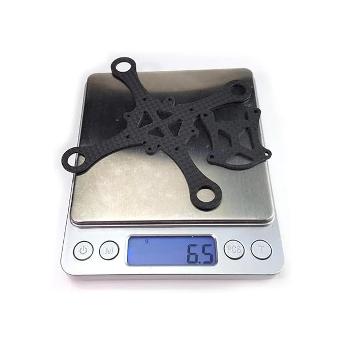 Placa de fibra de carbono de 0.059 in, mantiene el choque, los soportes de motor de goma mantienen el marco ligero y fácil de construir. También absorben la vibración de los micromotores y hélices, protegen el motor en choques