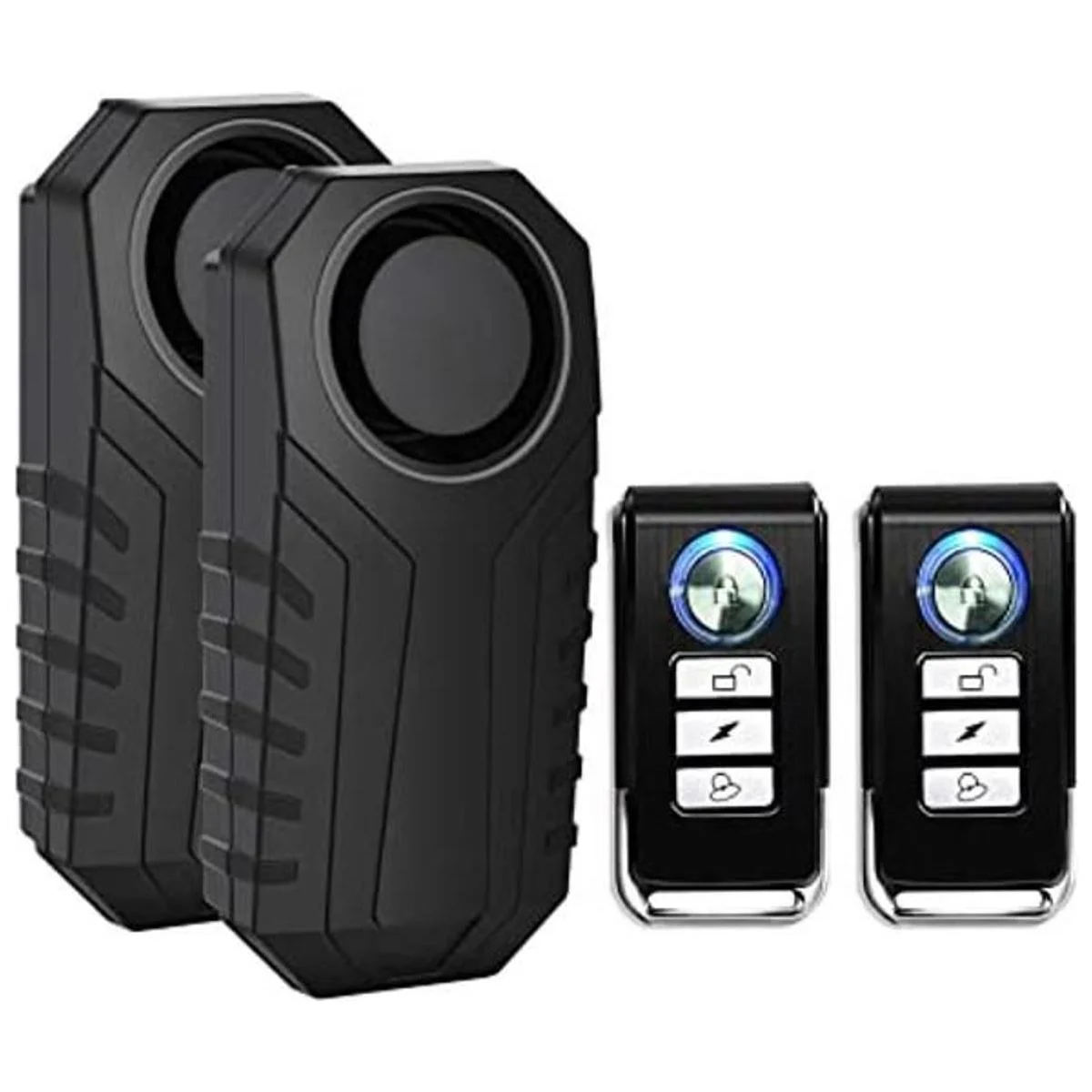 USUPERINK Juego de 2 alarmas inalámbricas para bicicleta con control remoto, alarma antirrobo, alarma inalámbrica con sensor de movimiento, alarma impermeable IP55, alarma súper fuerte de 113 dB