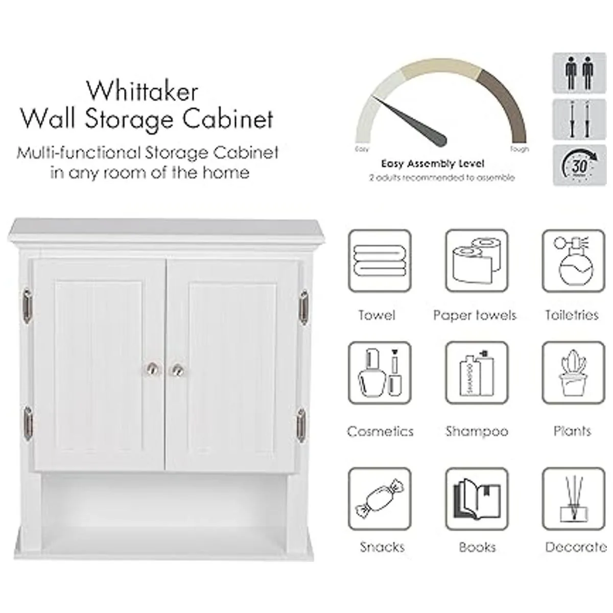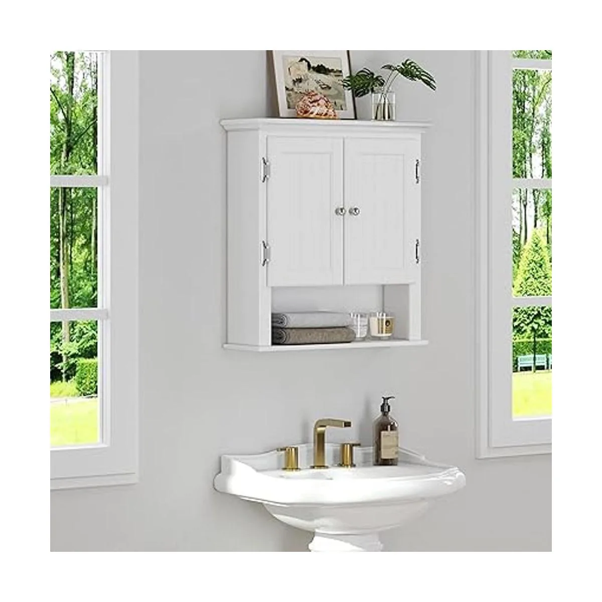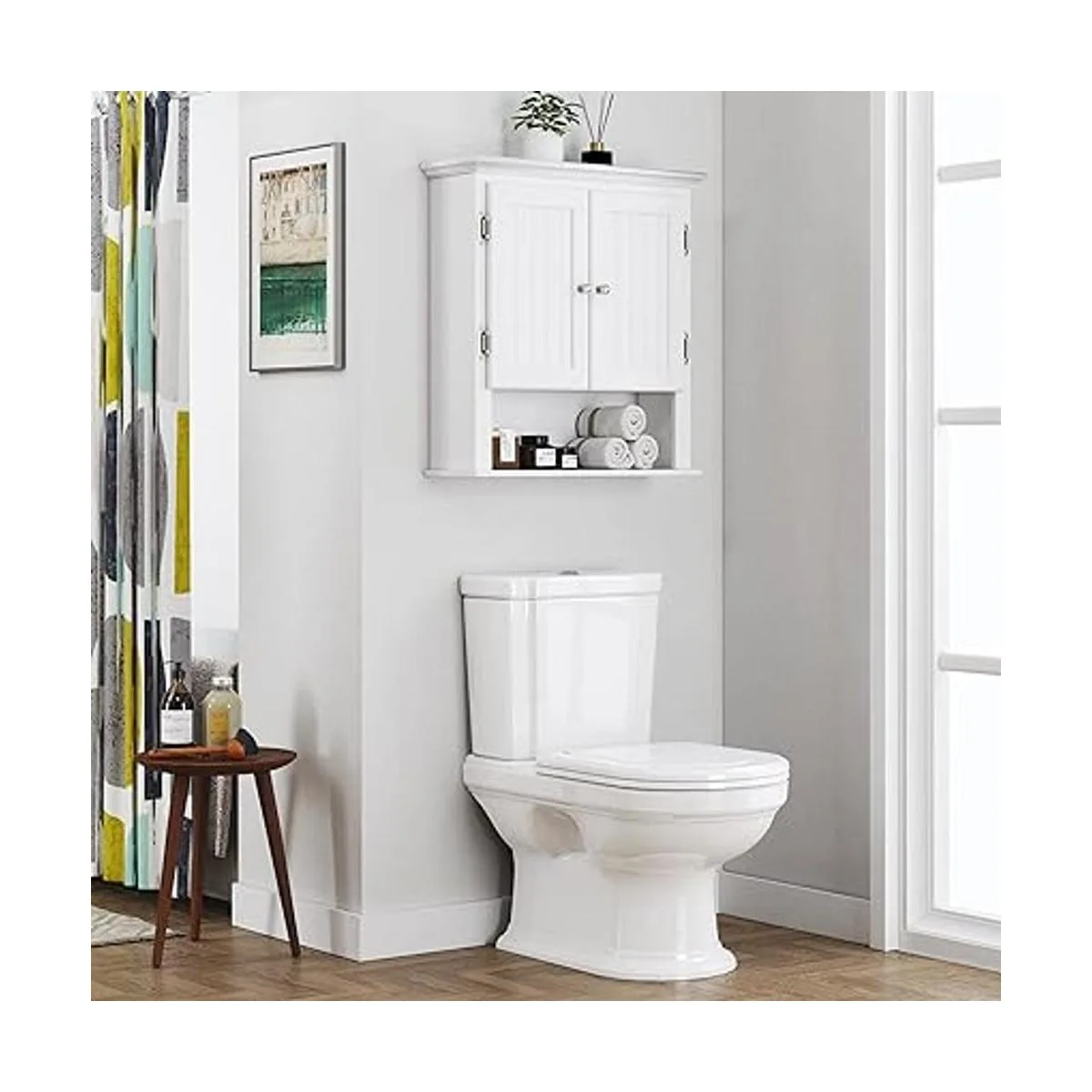 UTEX Armario de baño montado en la pared, gabinete colgante de madera, armarios de pared con puertas y estantes sobre el inodoro para baño, color blanco
