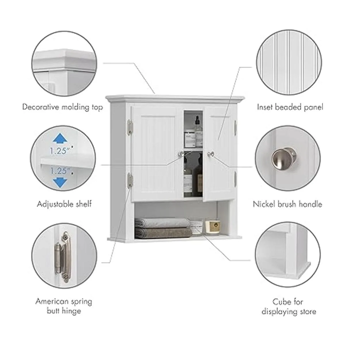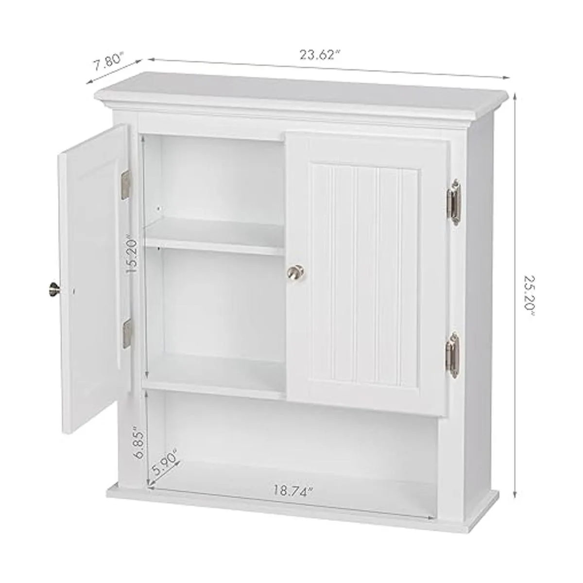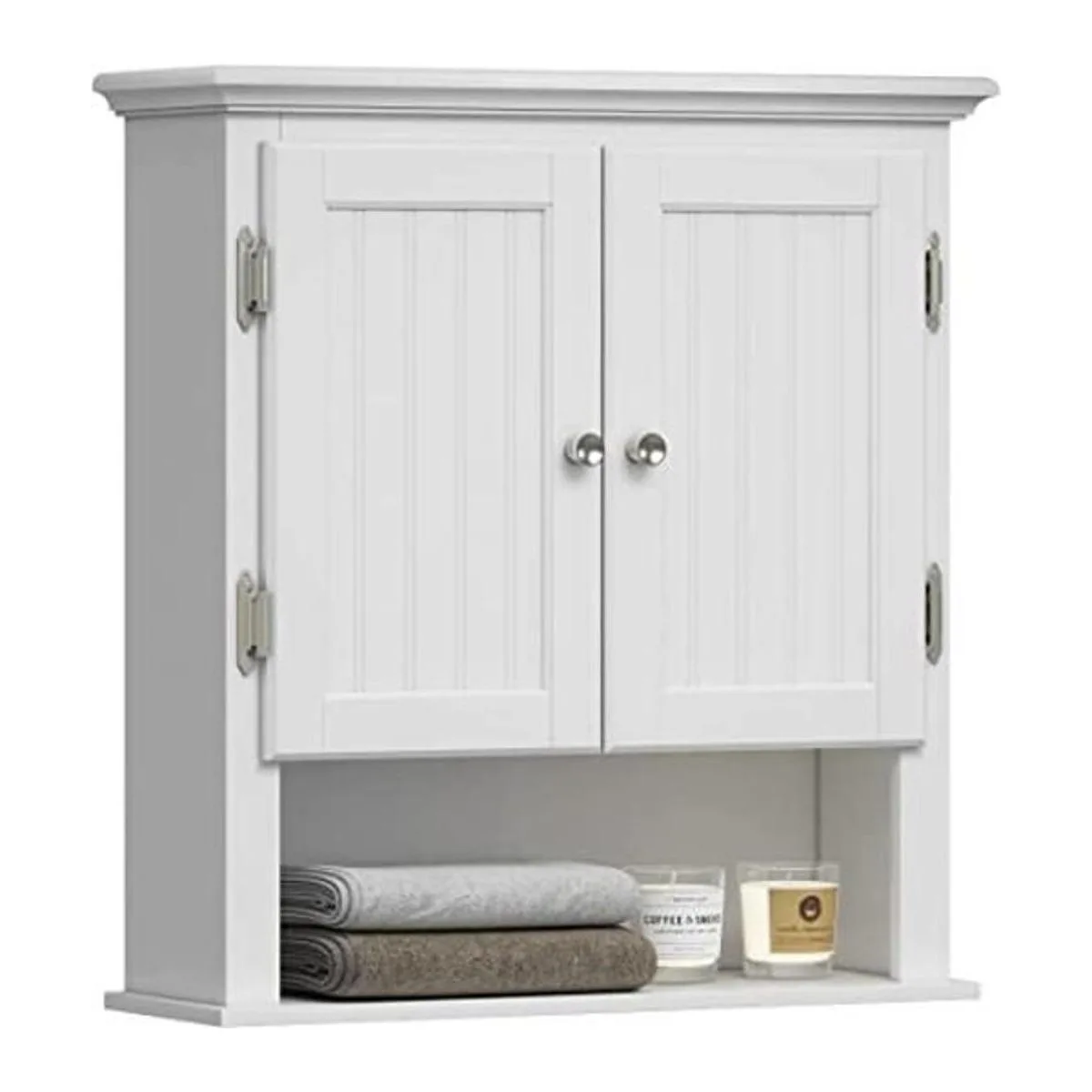 UTEX Armario de baño montado en la pared, gabinete colgante de madera, armarios de pared con puertas y estantes sobre el inodoro para baño, color blanco