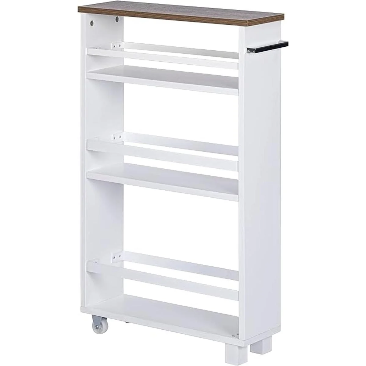 UTEX Carrito de almacenamiento delgado de cocina de 4 niveles, gabinete de almacenamiento lateral con asa para cocina, baño, lavandería, lugares de esquina estrechos, color blanco