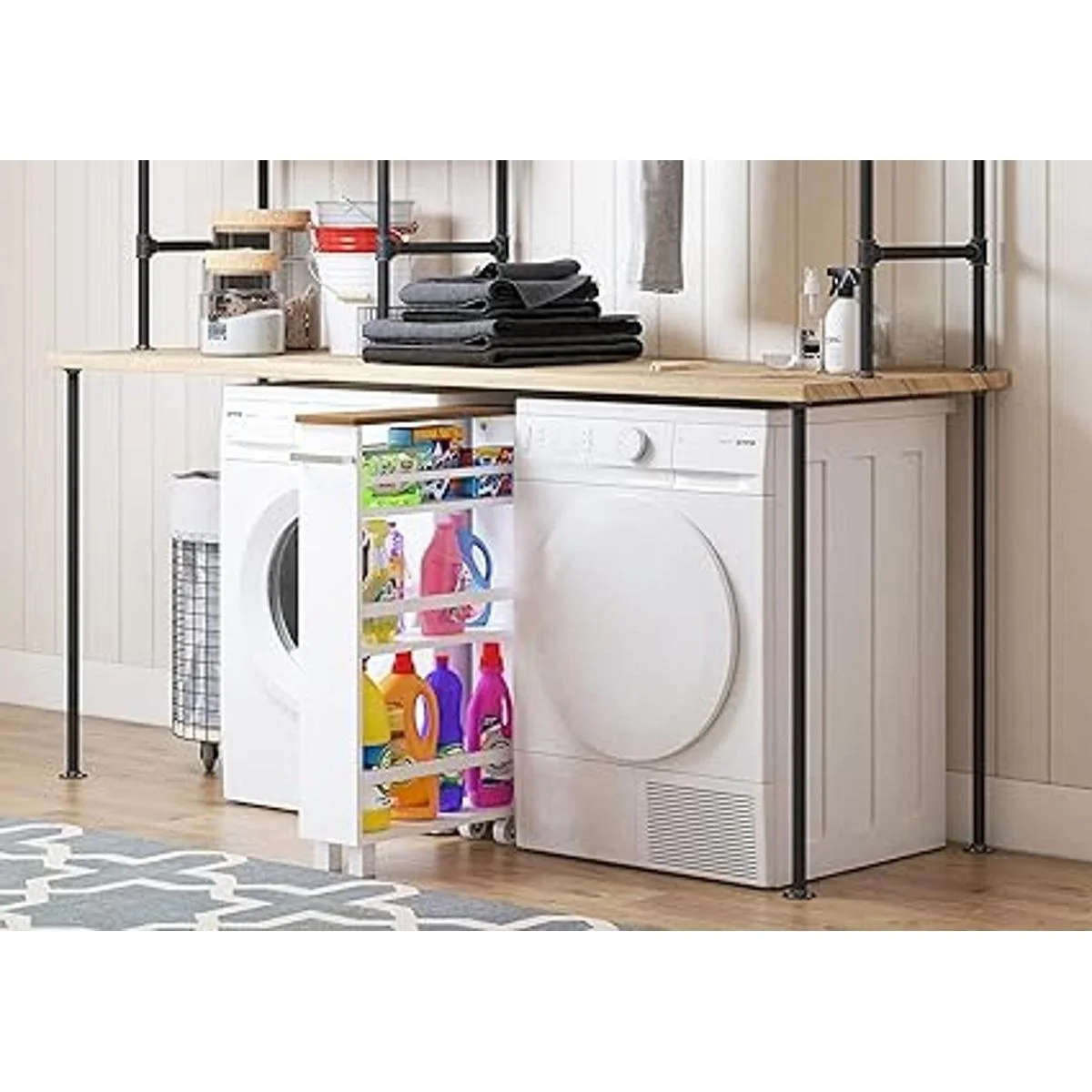 Organizador perfecto para espacios reducidos: este armario de almacenamiento lateral rodante con 2 ruedas duraderas es perfectamente perfecto para espacios reducidos y se desliza sin esfuerzo junto a un refrigerador, lavadora, despensa o armario. El diseño pensado de las asas laterales proporciona un fácil agarre, lo que hace que el transporte sea simple y fácil.