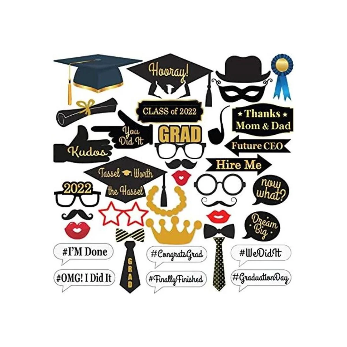 UTILERA PARA CABINA FOTOGRFICA PARA GRADUACIN 2017 no Requiere bricolaje perfecto para decoraciones de graduación y para suministros de fiestas de graduación cartulina laminada dorada de calidad Premium tamaño grande para más diversión 38 piezas